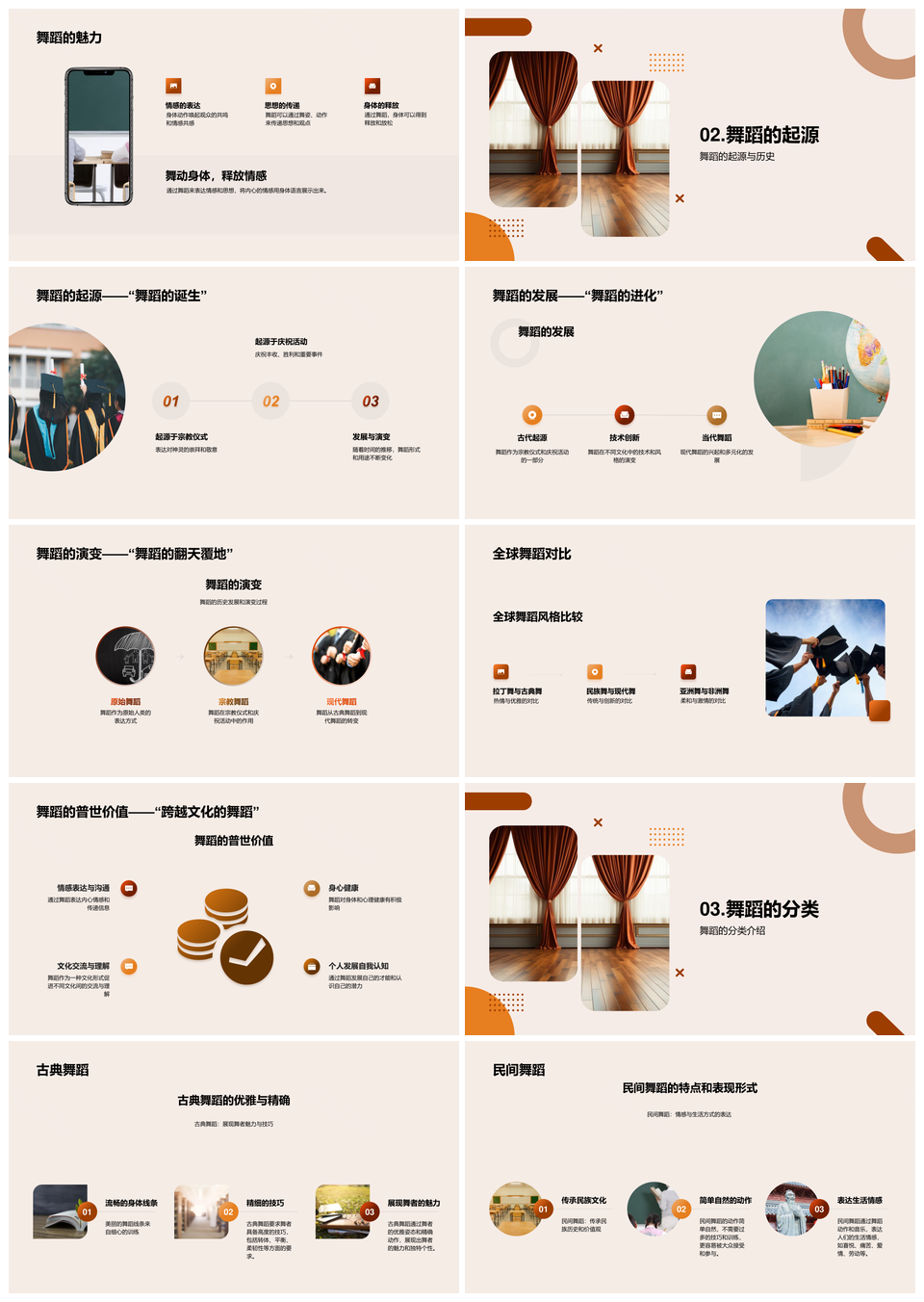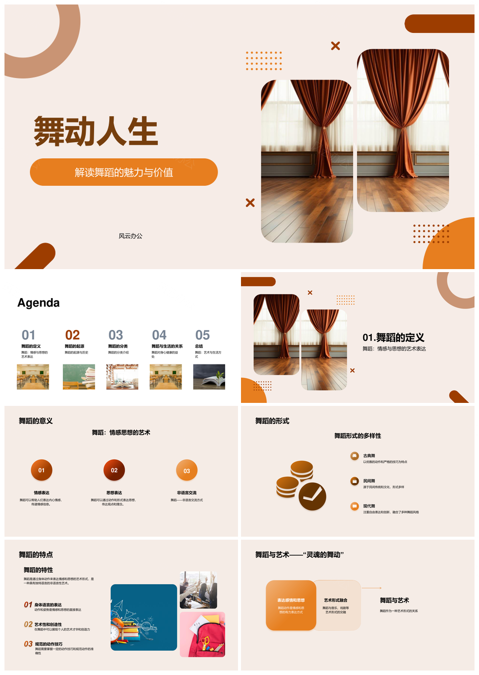 风云办公提供的舞蹈艺术情思古典芭蕾源流演变PPT模板,下载格式为pptx,一共33页,作品中文字及图均可以修改和编辑,图片更改请在作品中右键图片并更换,文字修改请直接点击文字进行修改。