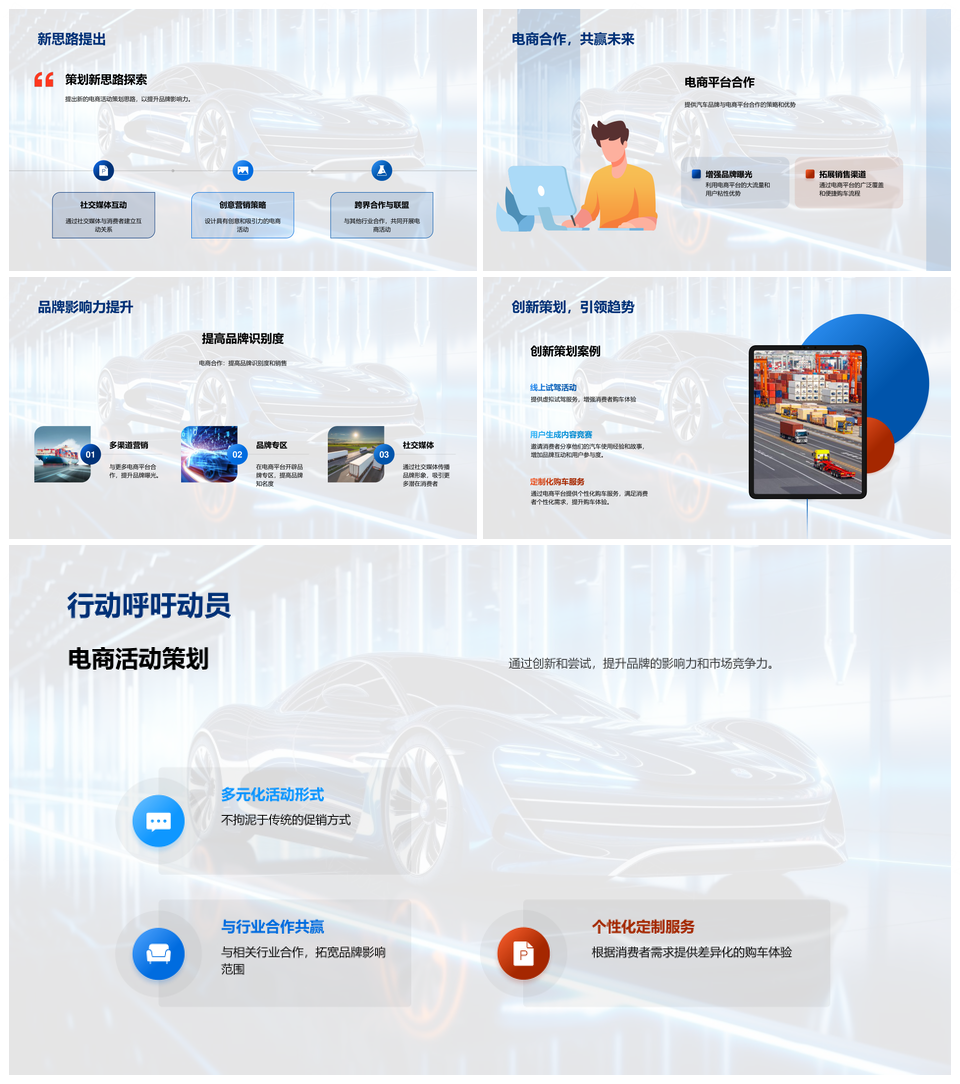 汽车电商市场趋势与电动汽车品牌营销策略PPT模板