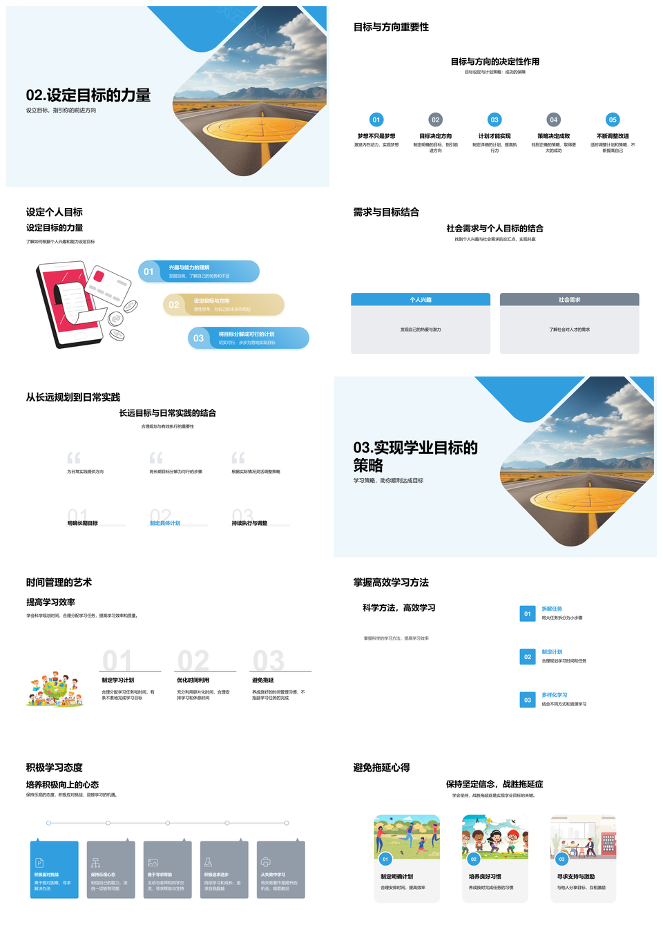 目标引领学习路标时间管理艺术高效方法PPT模板推荐