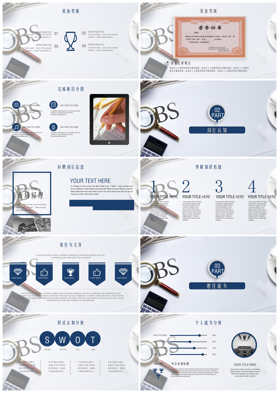 蓝色微立体风结构完整求职简历竞聘求职信PPT模板