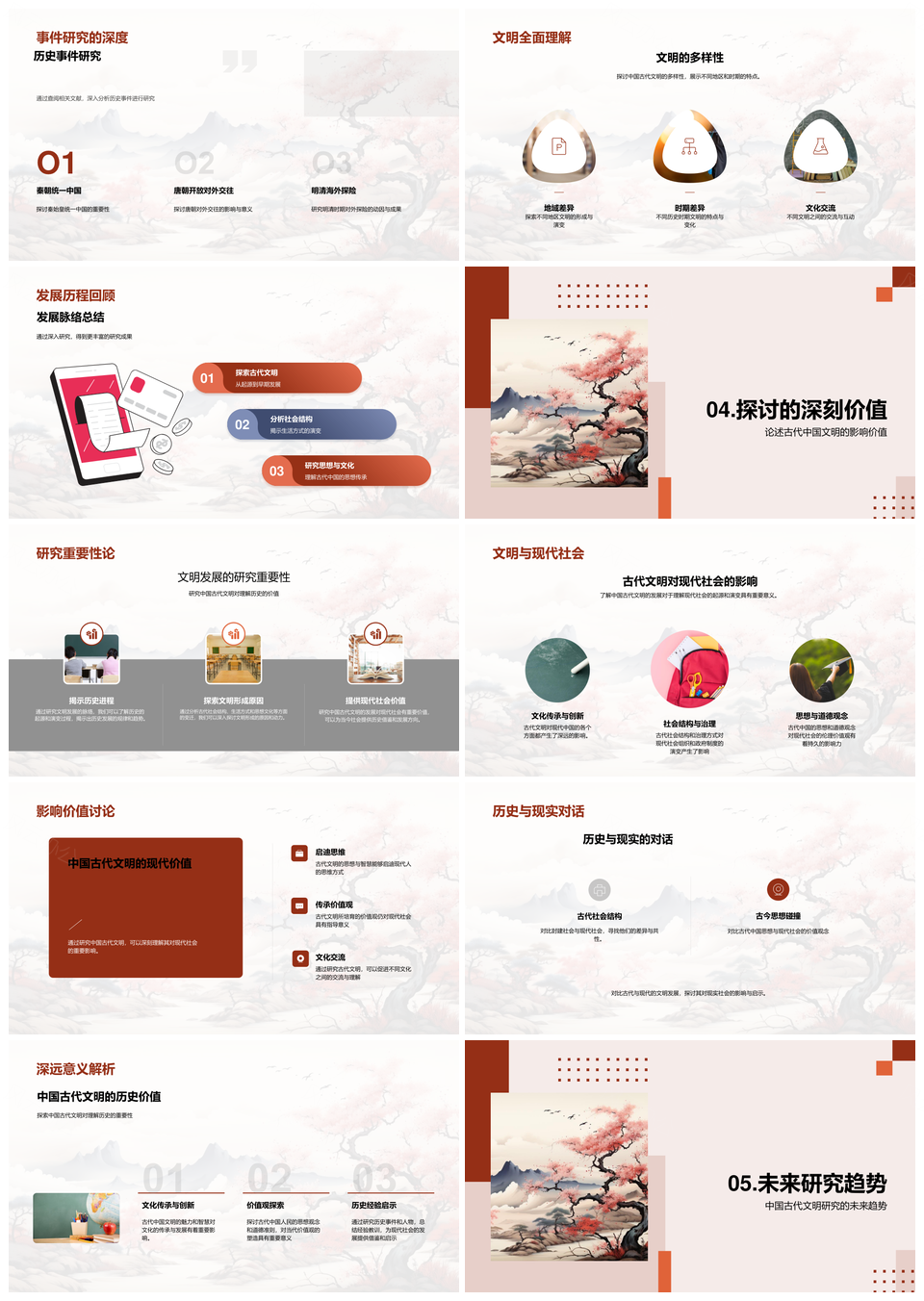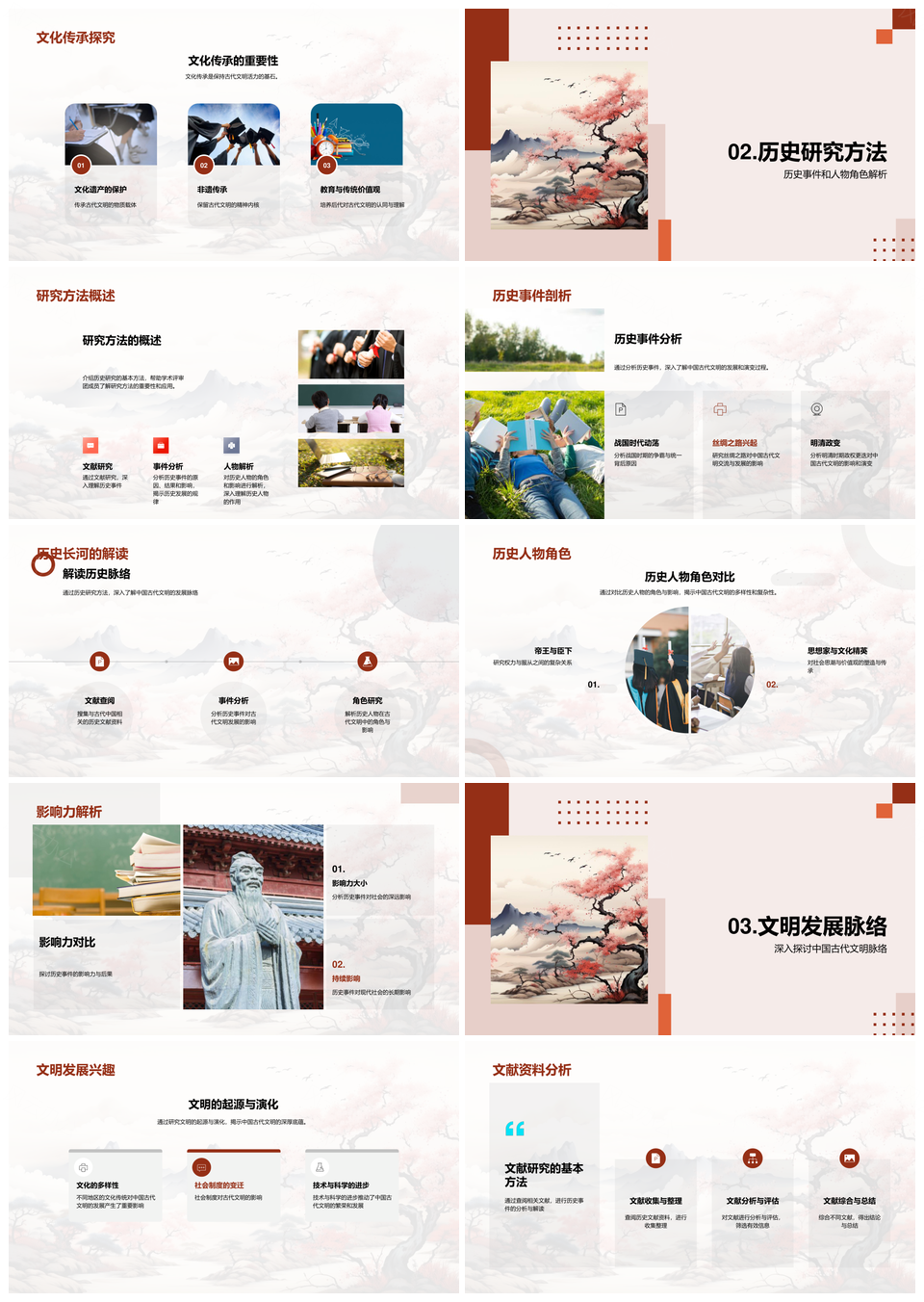 古代中国文明探源社会思想卷轴史事演进趋势PPT模板推荐