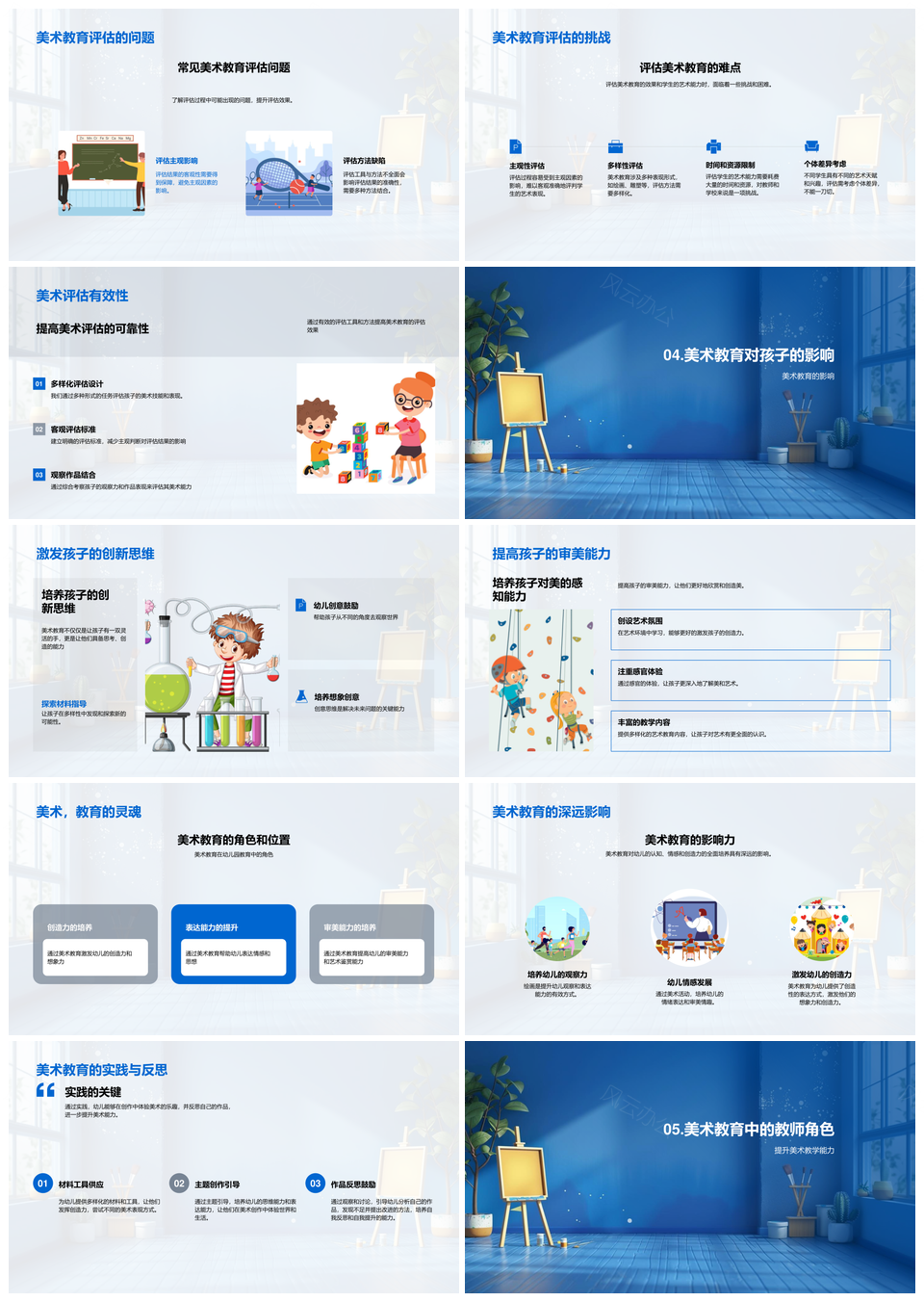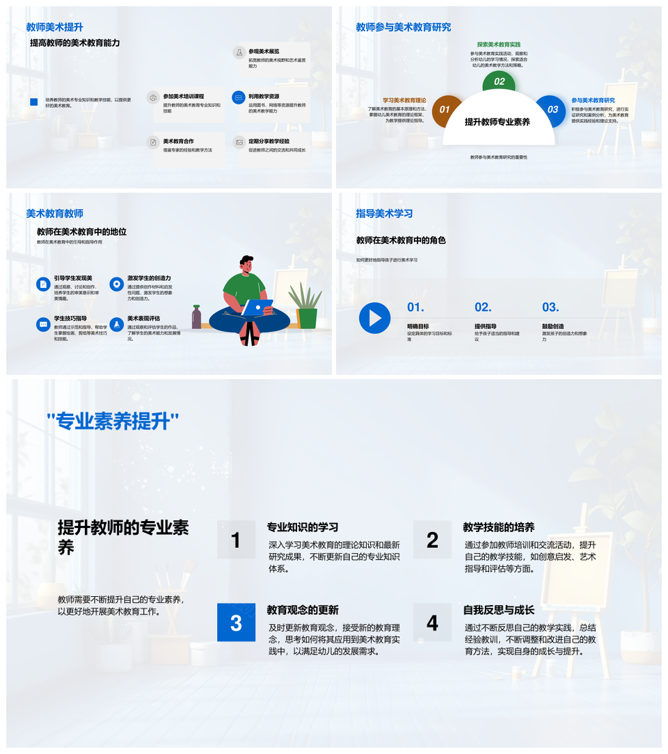 这是一张幼教美术实践课程师训教学方法评估创新PPT模板,包含幼教、美术、实践课程、师训、教学、方法、评估、创新等主题内容,也可用作幼教美术实践课程、美术实践课程师训、实践课程师训教学、课程师训教学方法评估、师训教学方法评估创新、美术实践课程、实践课程师训、课程师训教学、师训教学方法评估、教学方法评估创新、幼教美术、美术实践、实践课程、师训教学、评估创新等PPT场景使用。 风云办公提供的幼教美术实践课程师训教学方法评估创新PPT模板,下载格式为pptx,一共33页,作品中文字及图均可以修改和编辑,图片更改请在作品中右键图片并更换,文字修改请直接点击文字进行修改。