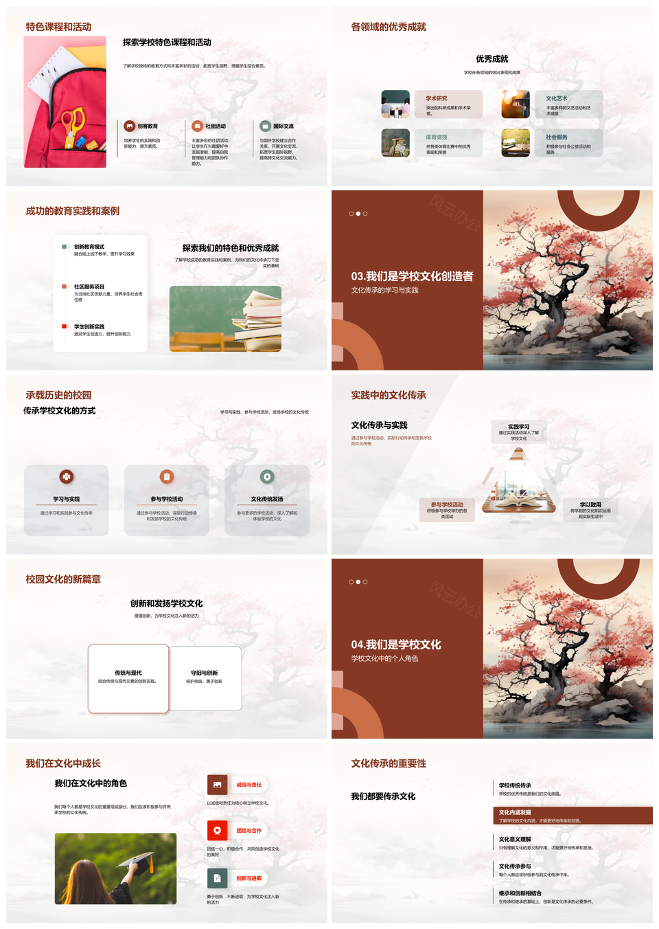 这是一张学校文化传承发扬教育理念价值观特色课程活动古卷轴PPT模板,包含学校、文化传承、发扬、教育理念、价值观、特色课程、活动、古卷轴等主题内容,也可用作学校文化传承发扬、传承发扬教育理念、发扬教育理念价值观、教育理念价值观特色、价值观特色课程活动、学校特色课程活动、学校教育理念价值观、学校文化传承、文化传承发扬、传承发扬教育、发扬教育理念、教育理念价值观、理念价值观特色、价值观特色课程、特色课程活动等PPT场景使用。 风云办公提供的学校文化传承发扬教育理念价值观特色课程活动古卷轴PPT模板,下载格式为pptx,一共23页,作品中文字及图均可以修改和编辑,图片更改请在作品中右键图片并更换,文字修改请直接点击文字进行修改。