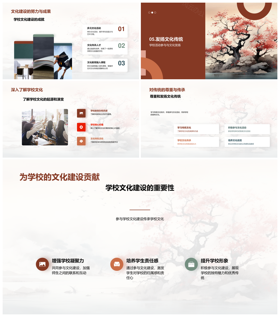学校文化传承发扬教育理念价值观特色课程活动古卷轴PPT模板推荐