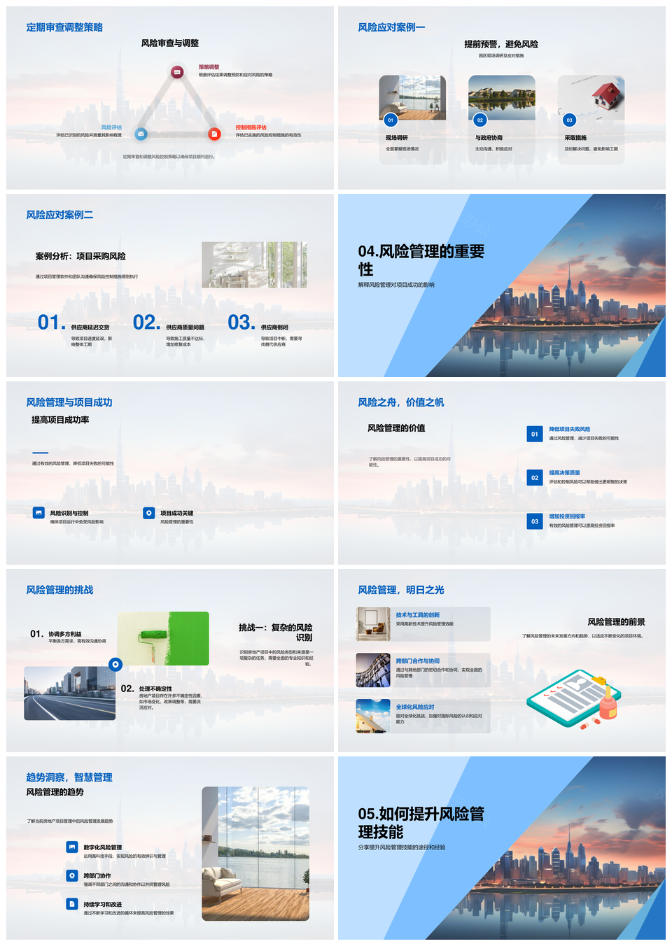 这是一张房地产摩天大楼项目风险管控策略工具案例PPT模板,包含房地产、摩天大楼、项目、风险、管控、策略、工具、案例等主题内容,也可用作房地产摩天大楼项目风险管控、摩天大楼项目风险管控策略、项目风险管控策略工具、风险管控策略工具案例、房地产摩天大楼风险管控策略、摩天大楼项目策略工具案例、房地产项目风险管控工具、风险管控策略案例、房地产策略工具案例、摩天大楼项目工具案例、项目风险管控案例、房地产摩天大楼案例、策略工具案例、摩天大楼项目案例、项目风险案例等PPT场景使用。 风云办公提供的房地产摩天大楼项目风险管控策略工具案例PPT模板,下载格式为pptx,一共33页,作品中文字及图均可以修改和编辑,图片更改请在作品中右键图片并更换,文字修改请直接点击文字进行修改。