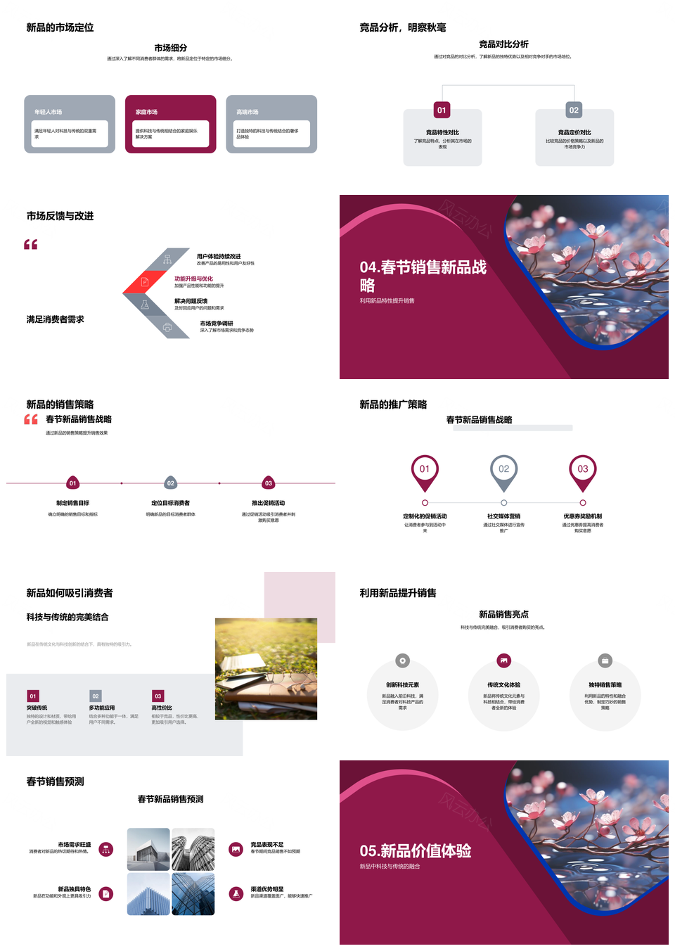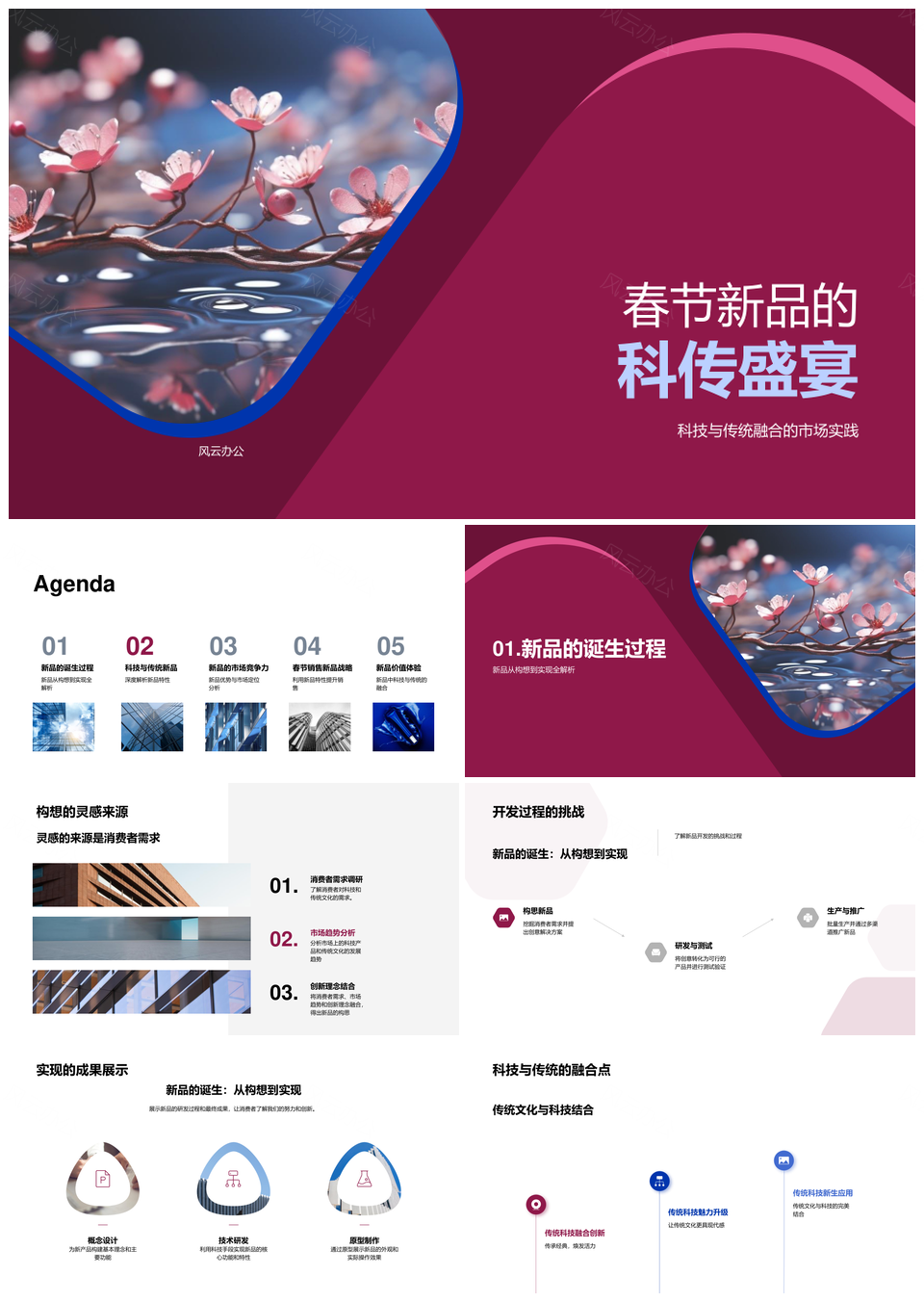 科技与传统融合春节新品开发营销樱花特性PPT模板推荐
