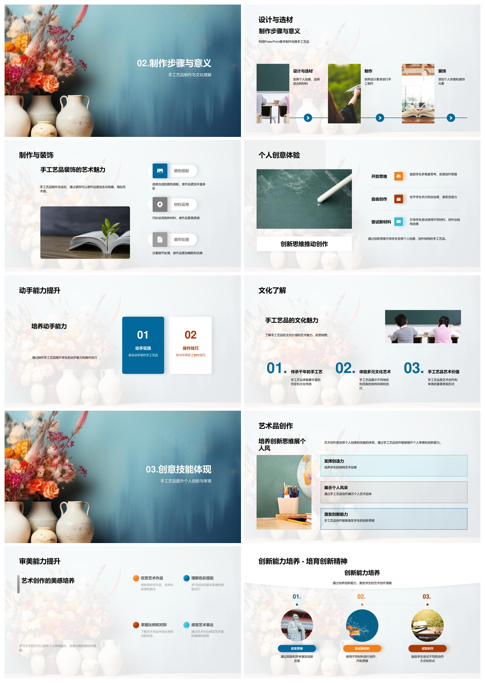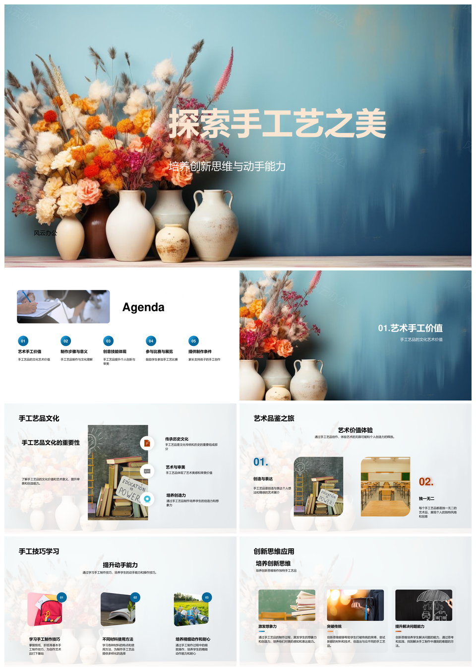 风云办公提供的创新思维动手能力制作手工艺之美PPT模板,下载格式为pptx,一共29页,作品中文字及图均可以修改和编辑,图片更改请在作品中右键图片并更换,文字修改请直接点击文字进行修改。