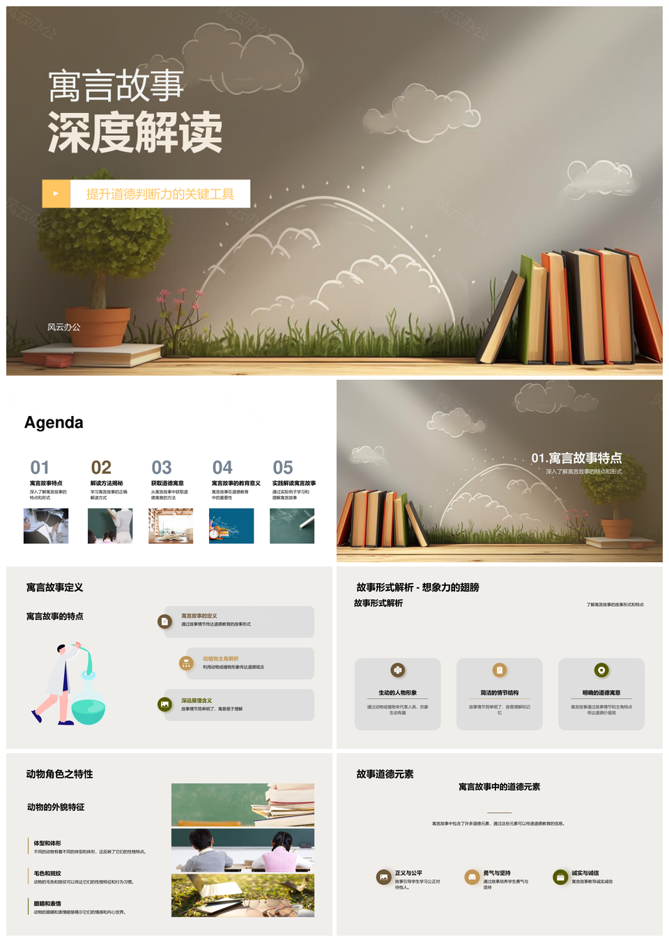 风云办公提供的小学语文寓言课件道德判断力教学PPT模板,下载格式为pptx,一共33页,作品中文字及图均可以修改和编辑,图片更改请在作品中右键图片并更换,文字修改请直接点击文字进行修改。