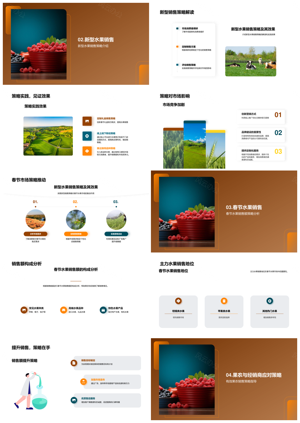 风云办公提供的春节水果营销趋势与消费需求策略PPT模板,下载格式为pptx,一共26页,作品中文字及图均可以修改和编辑,图片更改请在作品中右键图片并更换,文字修改请直接点击文字进行修改。
