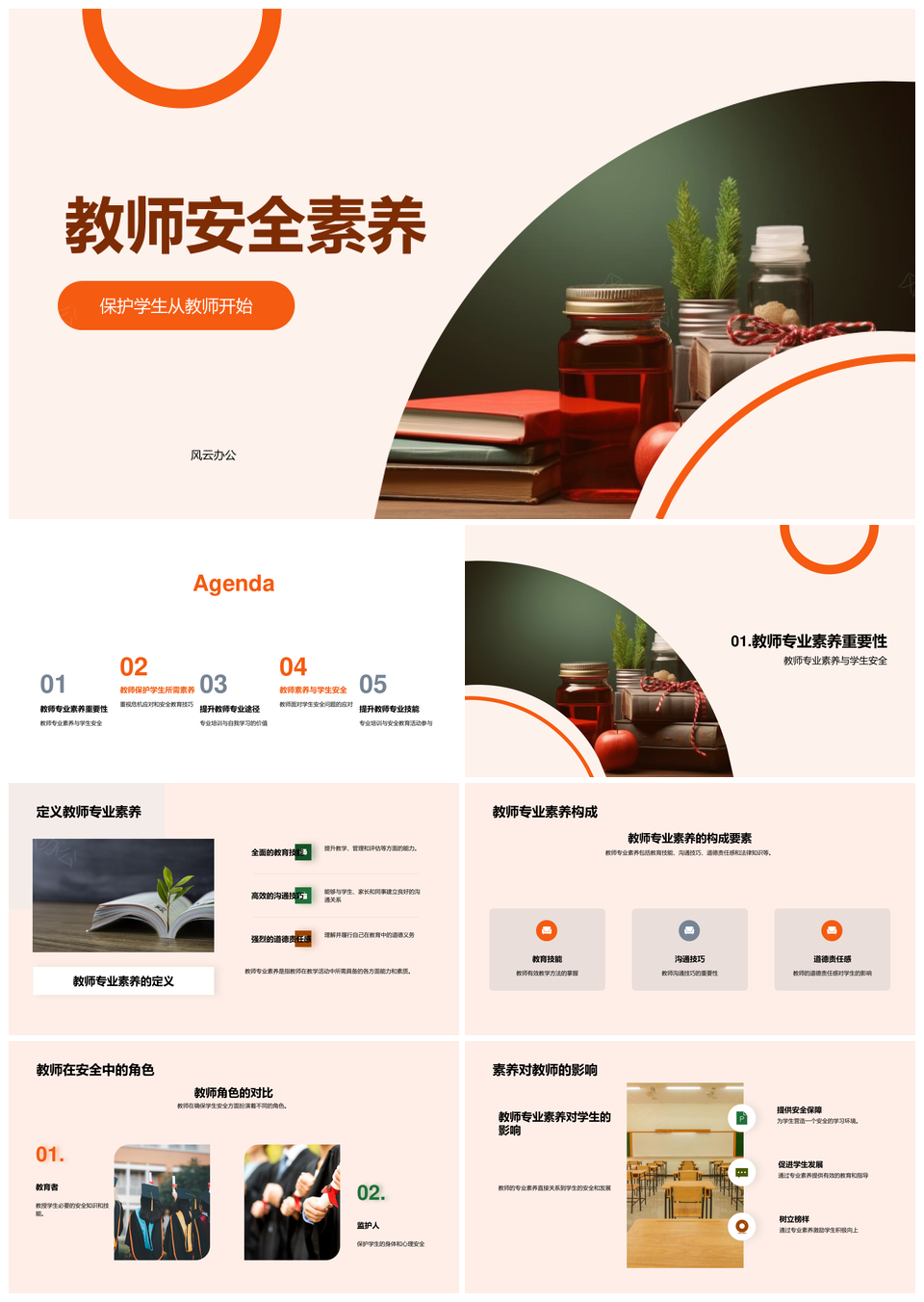 风云办公提供的教师安全素养培训强化学生安全防护PPT模板,下载格式为pptx,一共33页,作品中文字及图均可以修改和编辑,图片更改请在作品中右键图片并更换,文字修改请直接点击文字进行修改。