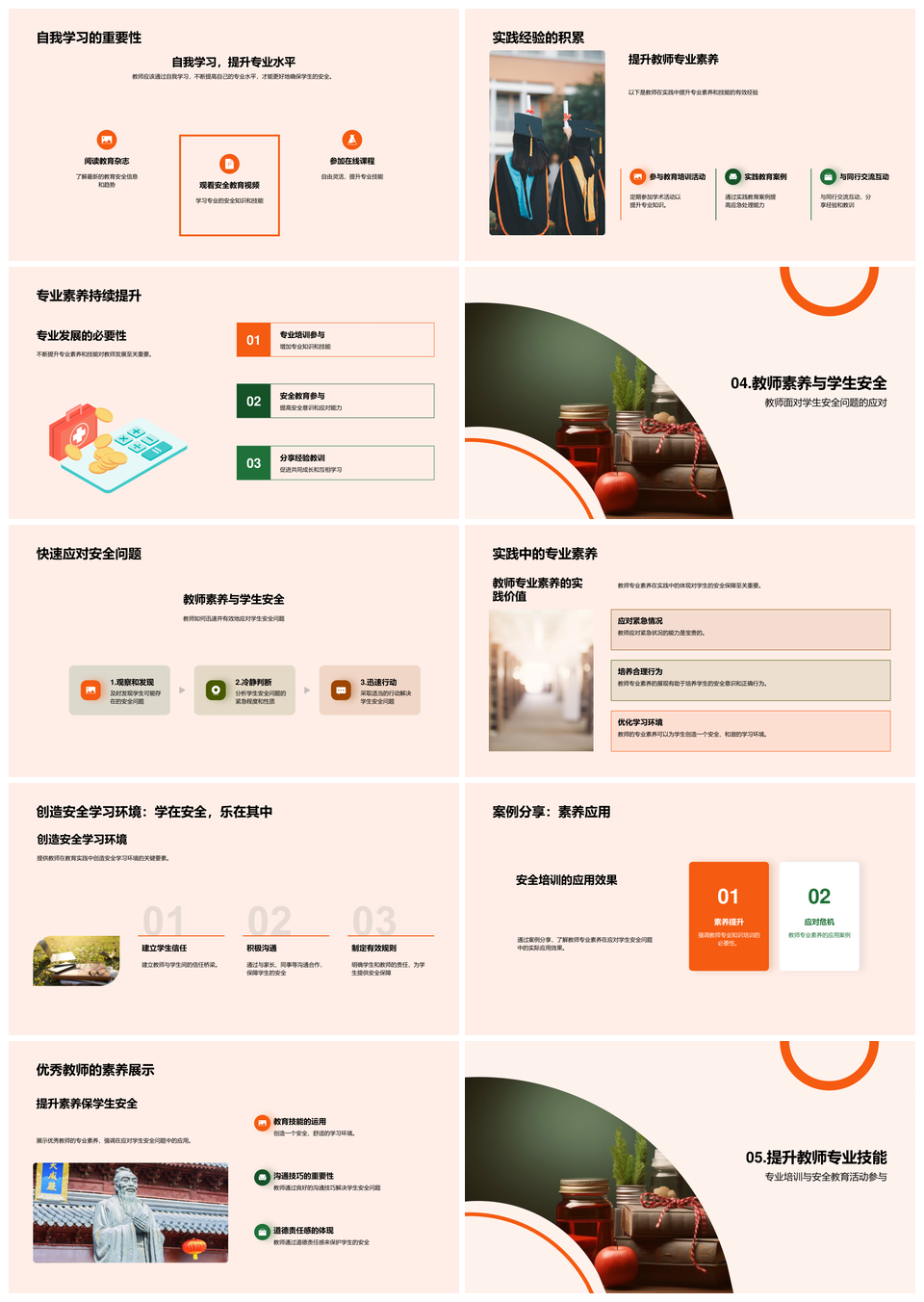 这是一张教师安全素养培训强化学生安全防护PPT模板,包含教师安全素养、培训、强化、学生安全防护等主题内容,也可用作教师安全素养培训、强化学生安全防护、培训学生安全防护、教师培训学生安全、教师强化学生安全、强化安全防护培训、学生安全素养培训、强化培训安全防护、安全素养培训、强化学生安全、学生安全防护、教师安全培训、安全防护培训、培训学生安全、安全培训等PPT场景使用。