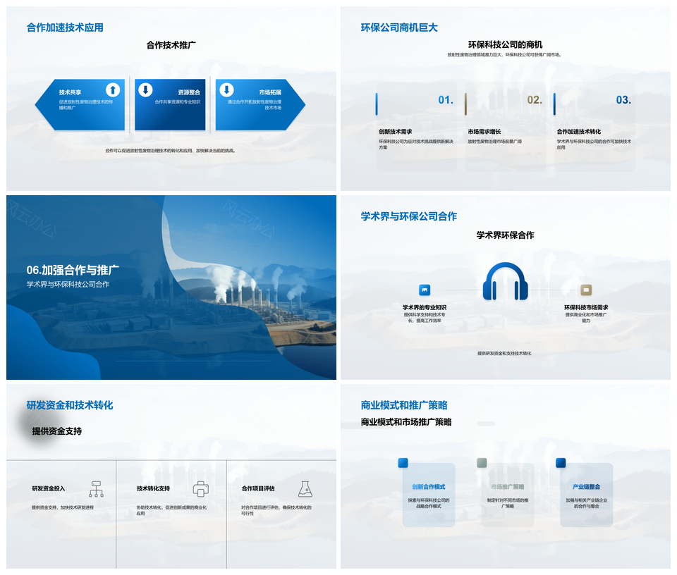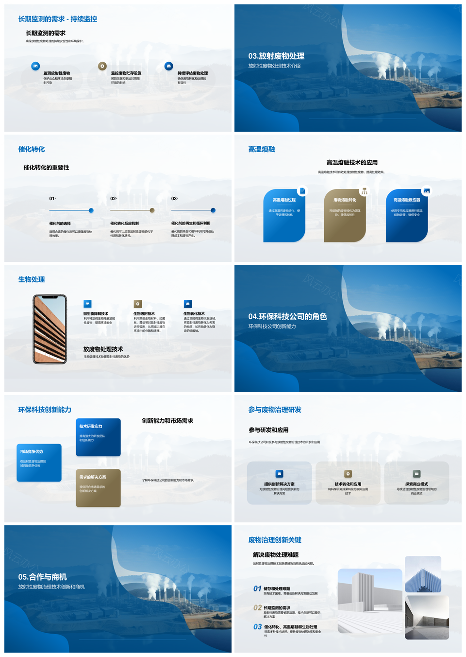 风云办公提供的科研企业合作创新放射性废物治理技术PPT模板,下载格式为pptx,一共24页,作品中文字及图均可以修改和编辑,图片更改请在作品中右键图片并更换,文字修改请直接点击文字进行修改。