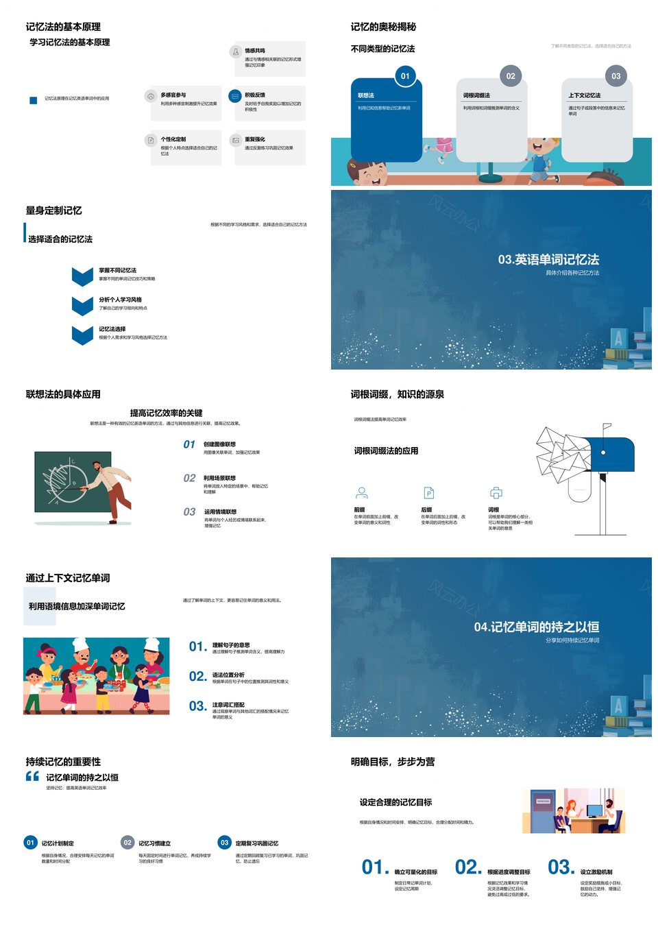 高效英语词汇记忆法原理联想法持续提升PPT模板推荐