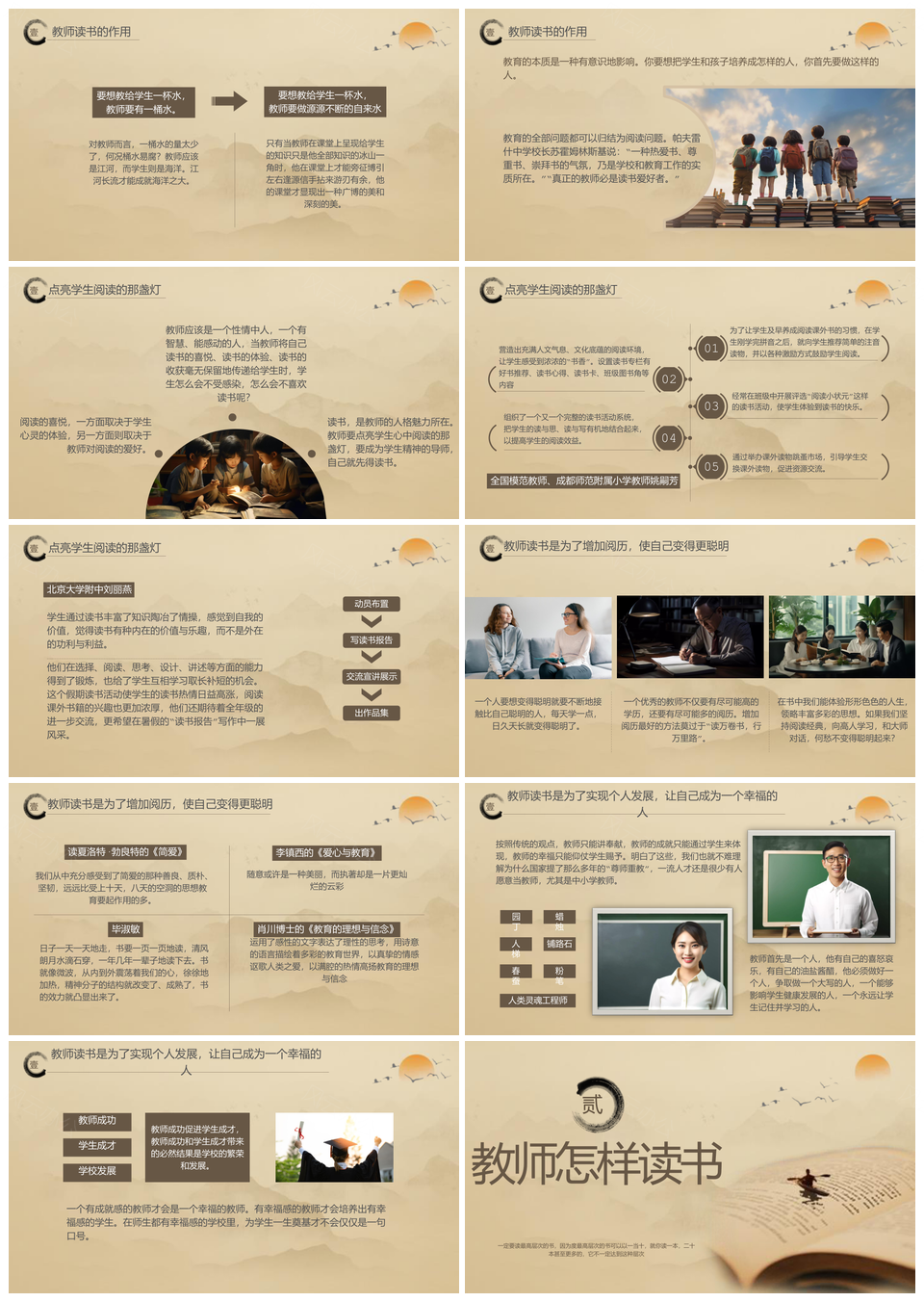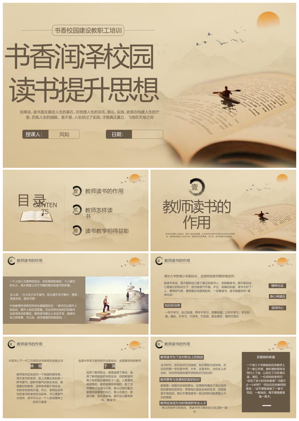 中国风书香校园建设读书日教职工培训PPT模板推荐
