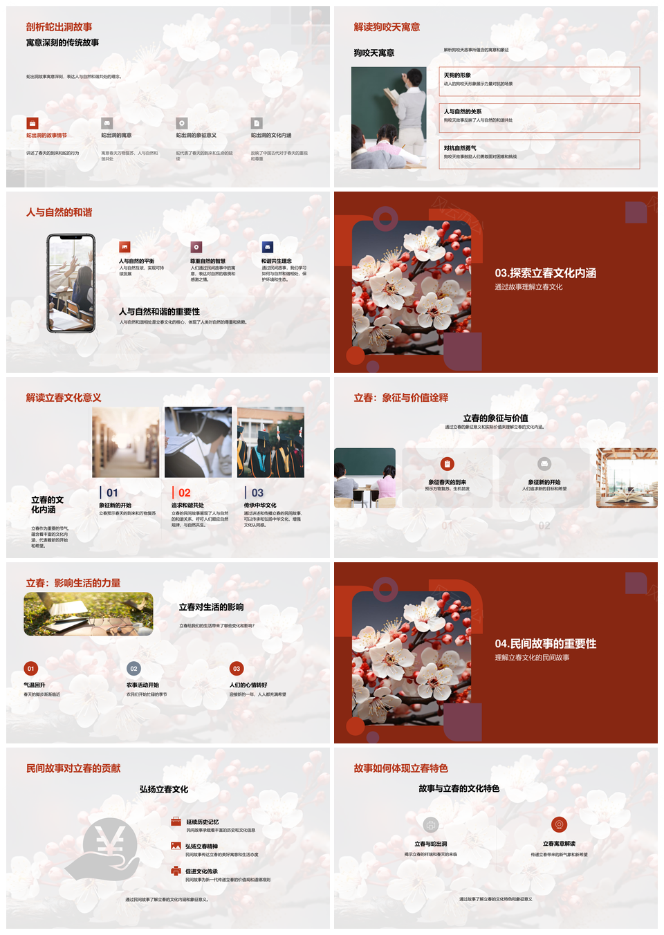 风云办公提供的立春蛇狗故事与古代节气文化和谐内涵PPT模板,下载格式为pptx,一共23页,作品中文字及图均可以修改和编辑,图片更改请在作品中右键图片并更换,文字修改请直接点击文字进行修改。