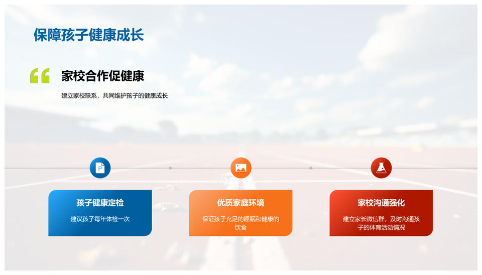 这是一张四年级体育健康家校共育运动潜能发展路线图PPT模板,包含四年级、体育健康、家校共育、运动潜能、发展路线图等主题内容,也可用作四年级体育健康家校共育、体育健康家校共育运动、家校共育运动潜能发展、共育运动潜能发展路线图、运动潜能发展路线图、四年级体育健康家校、体育健康家校共育、健康家校共育运动、家校共育运动潜能、共育运动潜能发展、运动潜能发展路线图、四年级体育健康、体育健康家校、健康家校共育、家校共育运动等PPT场景使用。 风云办公提供的四年级体育健康家校共育运动潜能发展路线图PPT模板,下载格式为pptx,一共29页,作品中文字及图均可以修改和编辑,图片更改请在作品中右键图片并更换,文字修改请直接点击文字进行修改。