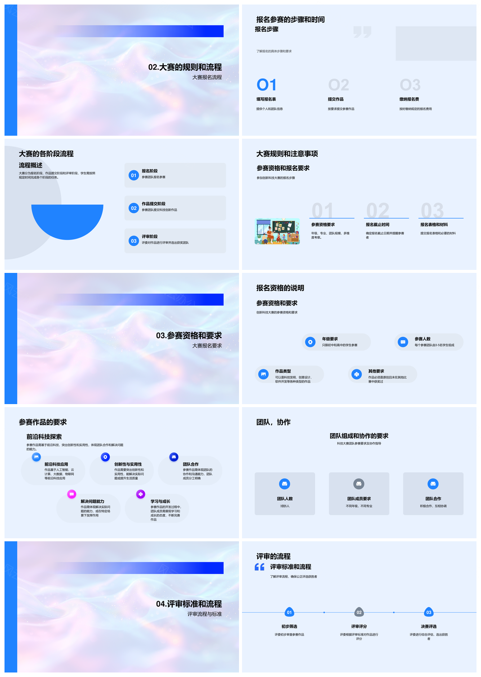 风云办公提供的科创大赛学生团队参赛指南与创新培训PPT模板,下载格式为pptx,一共24页,作品中文字及图均可以修改和编辑,图片更改请在作品中右键图片并更换,文字修改请直接点击文字进行修改。