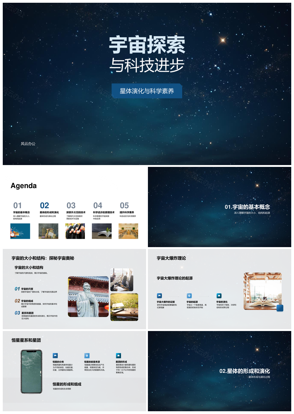 风云办公提供的宇宙大爆炸至恒星星系科技探索PPT模板,下载格式为pptx,一共23页,作品中文字及图均可以修改和编辑,图片更改请在作品中右键图片并更换,文字修改请直接点击文字进行修改。