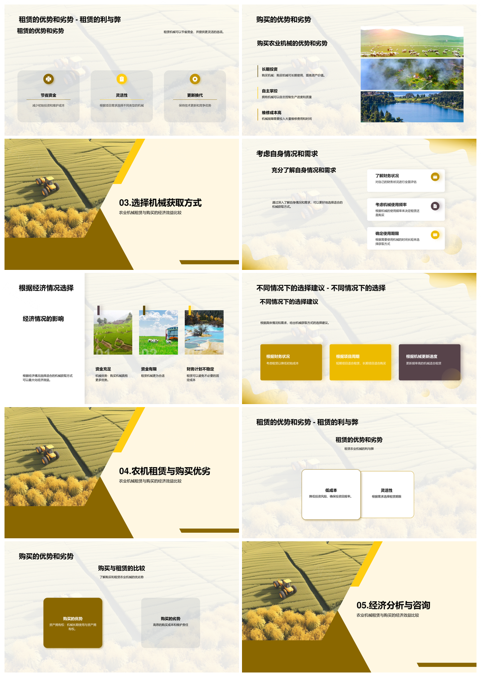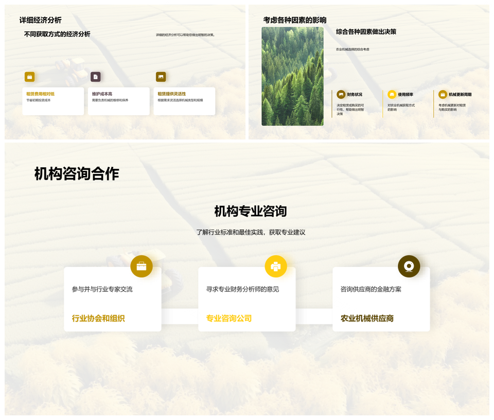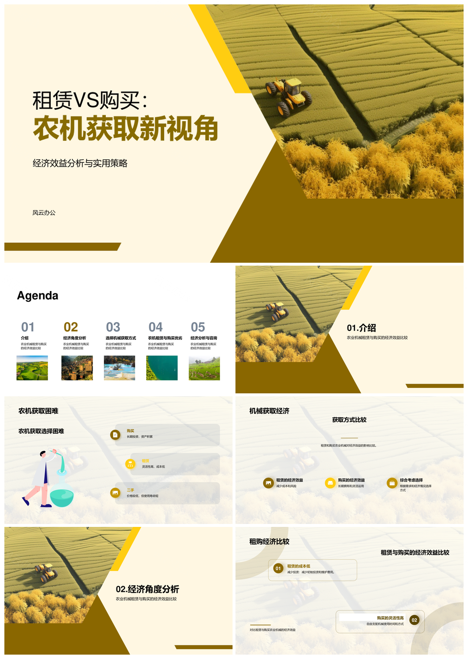 风云办公提供的农机租赁购买经济效益财务分析PPT模板,下载格式为pptx,一共21页,作品中文字及图均可以修改和编辑,图片更改请在作品中右键图片并更换,文字修改请直接点击文字进行修改。