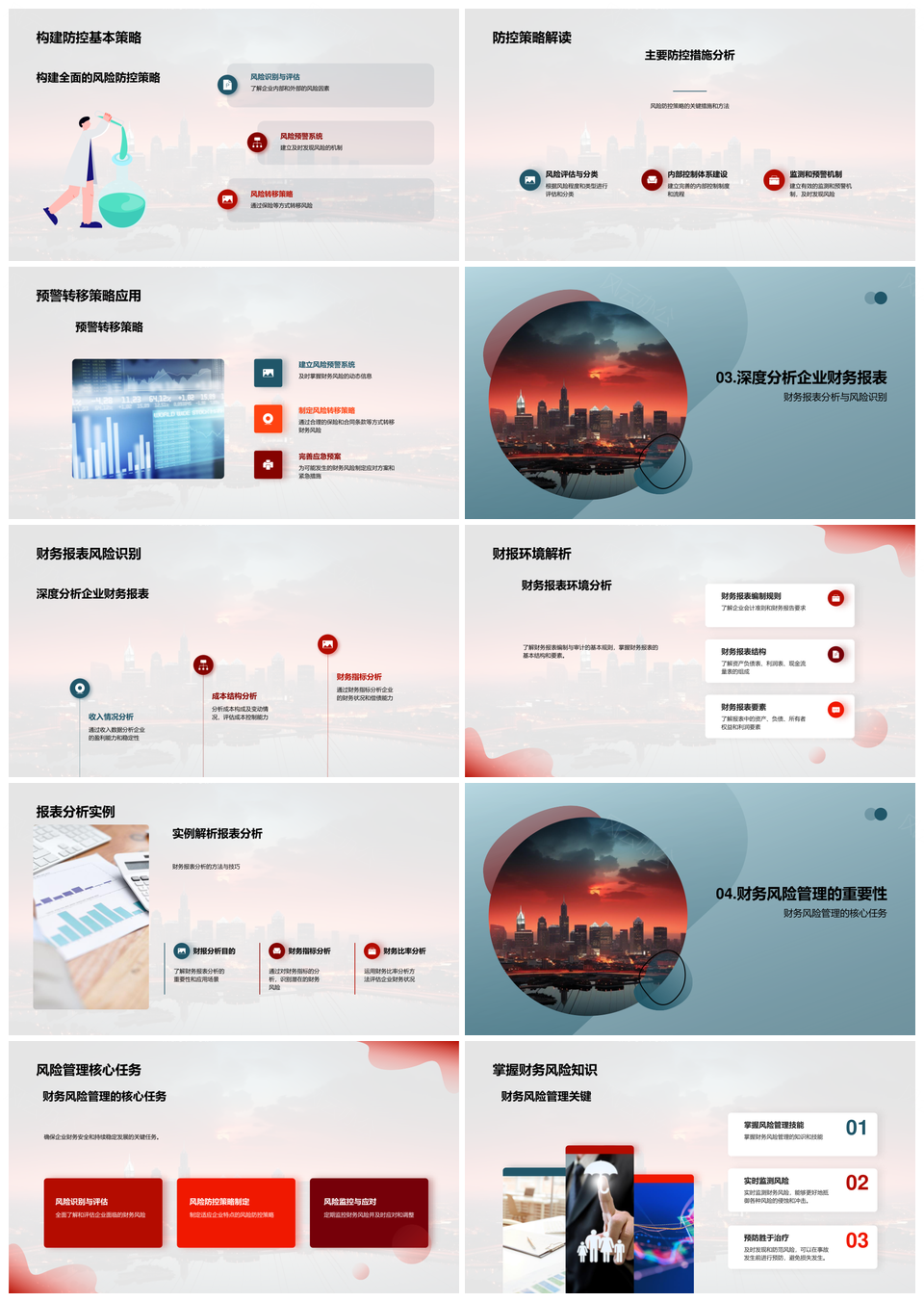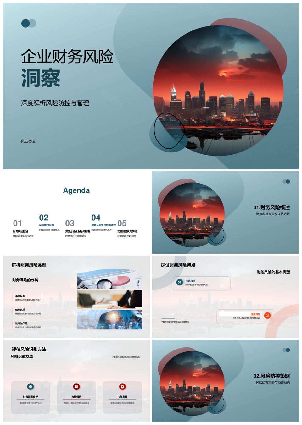 风云办公提供的企业财务风险管理防控预警分析策略PPT模板,下载格式为pptx,一共23页,作品中文字及图均可以修改和编辑,图片更改请在作品中右键图片并更换,文字修改请直接点击文字进行修改。
