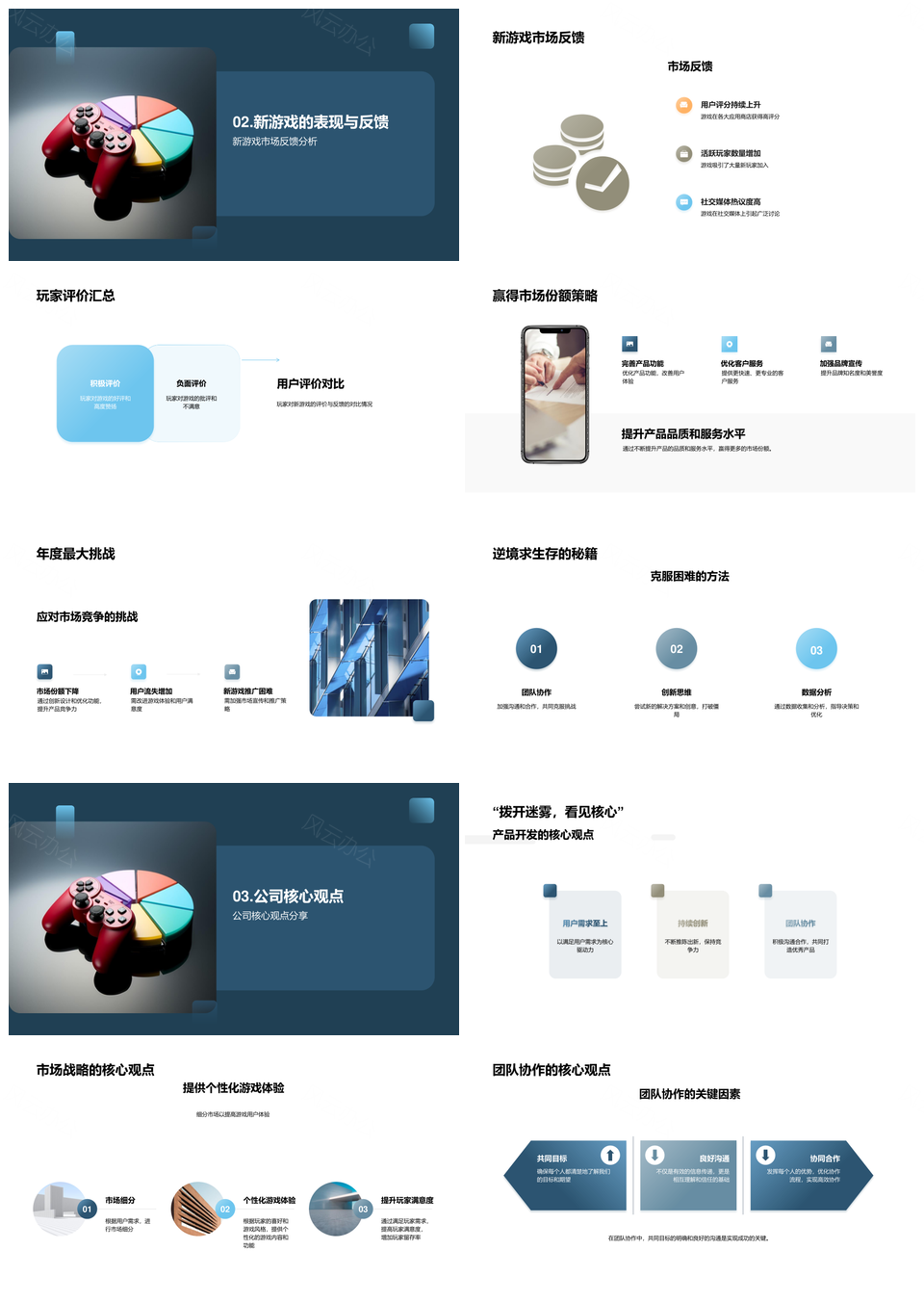 游戏开发年度回顾展望全球市场新作品质核心控制器PPT模板推荐