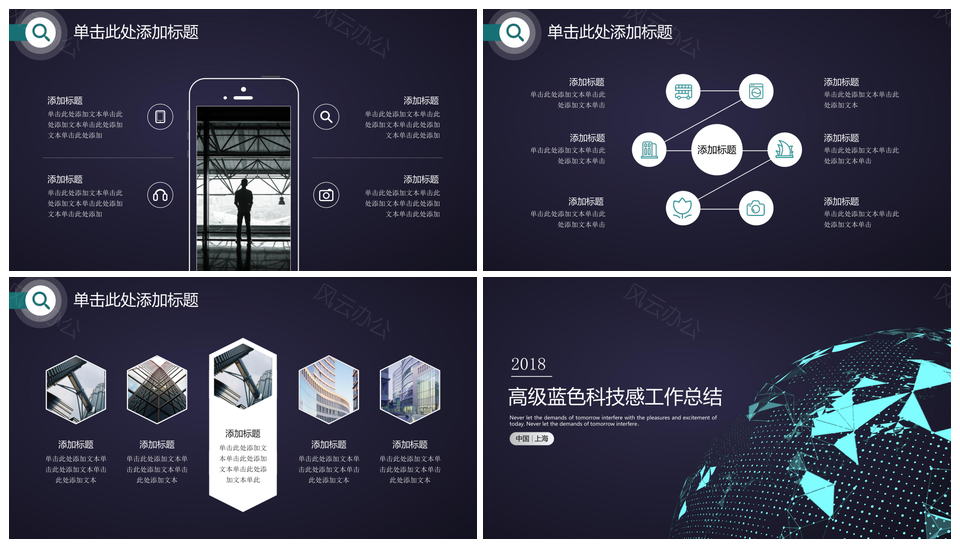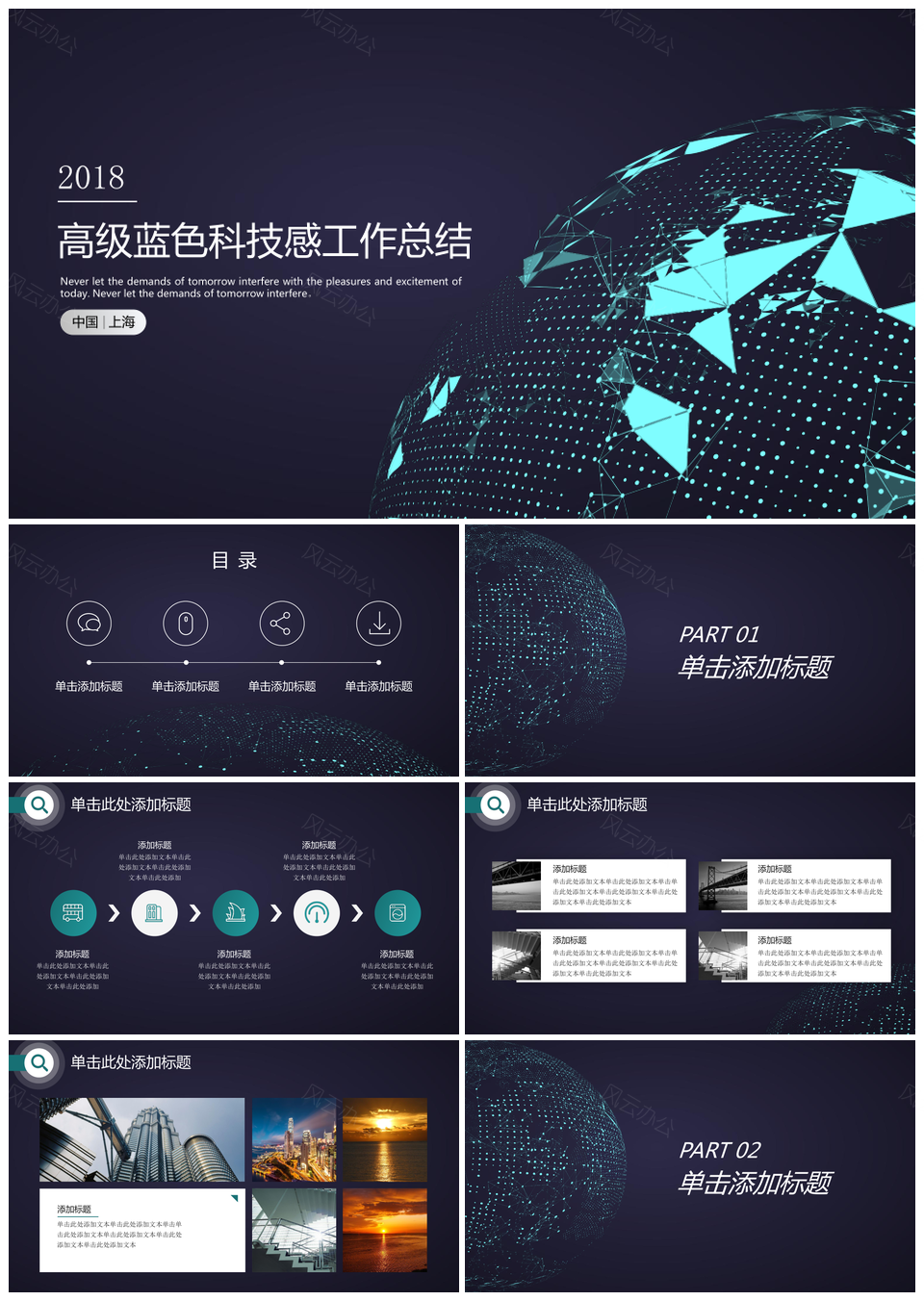 风云办公提供的高级蓝色科技感工作总结PPT模板,下载格式为pptx,一共21页,作品中文字及图均可以修改和编辑,图片更改请在作品中右键图片并更换,文字修改请直接点击文字进行修改。