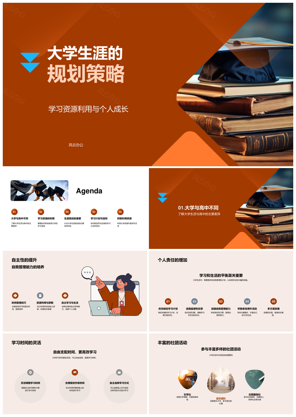 风云办公提供的大学生涯自主规划与学习资源成长策略PPT模板,下载格式为pptx,一共33页,作品中文字及图均可以修改和编辑,图片更改请在作品中右键图片并更换,文字修改请直接点击文字进行修改。