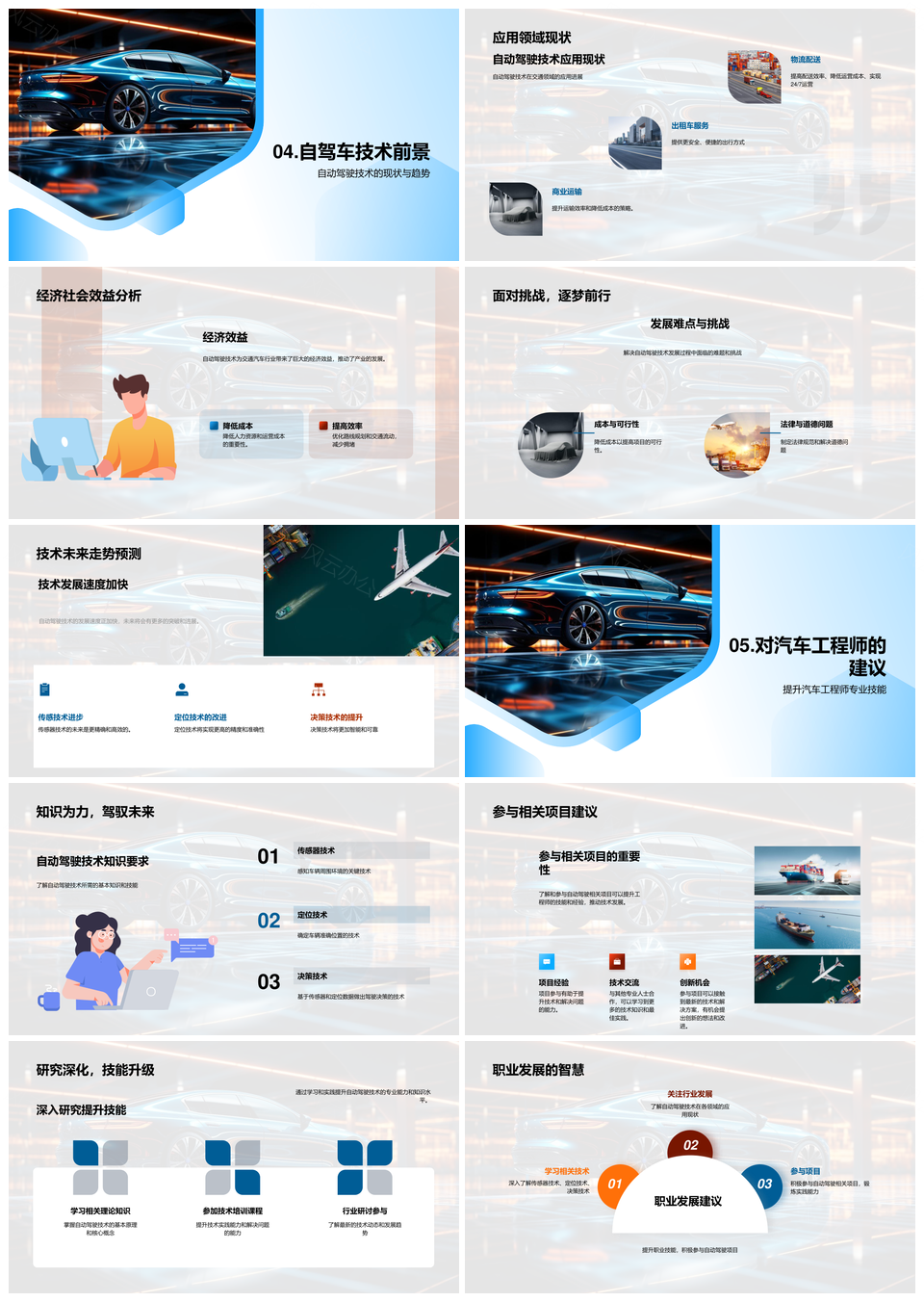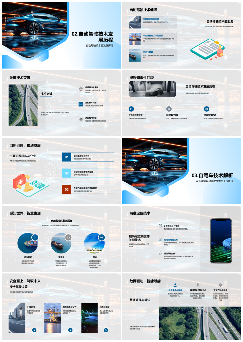 这是一张自动驾驶技术传感器定位决策研究挑战与效益PPT模板,包含自动驾驶技术、传感器、定位、决策、研究、挑战、效益等主题内容,也可用作自动驾驶技术传感器定位决策、自动驾驶技术传感器定位研究、自动驾驶技术定位决策研究、传感器定位决策研究挑战、定位决策研究挑战效益、自动驾驶技术传感器定位、自动驾驶技术定位决策、传感器定位决策研究、定位决策研究挑战、决策研究挑战效益、自动驾驶技术传感器、传感器定位、定位决策、决策研究、研究挑战等PPT场景使用。 风云办公提供的自动驾驶技术传感器定位决策研究挑战与效益PPT模板,下载格式为pptx,一共28页,作品中文字及图均可以修改和编辑,图片更改请在作品中右键图片并更换,文字修改请直接点击文字进行修改。