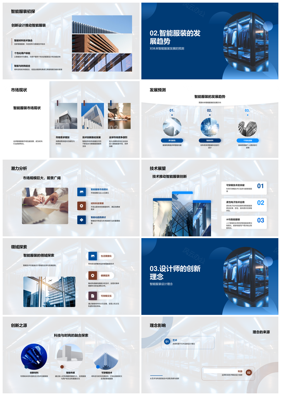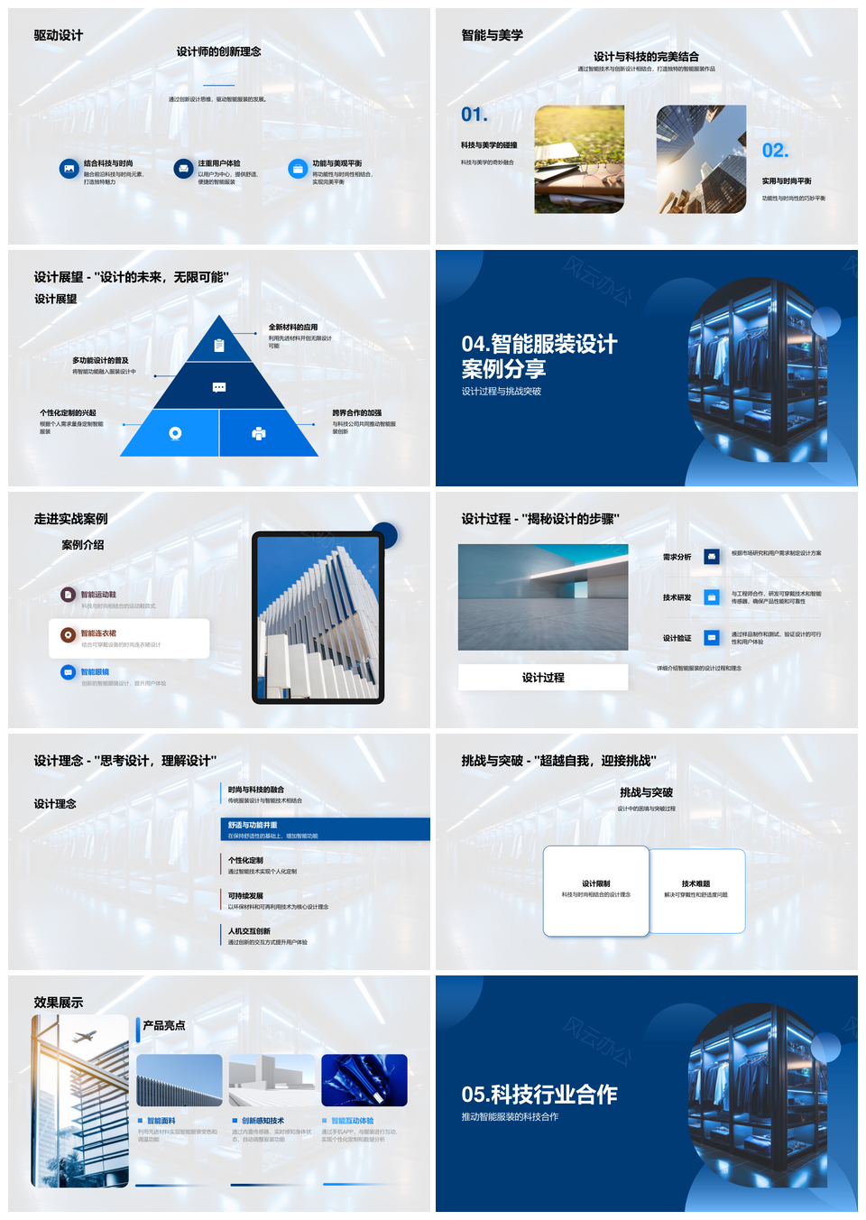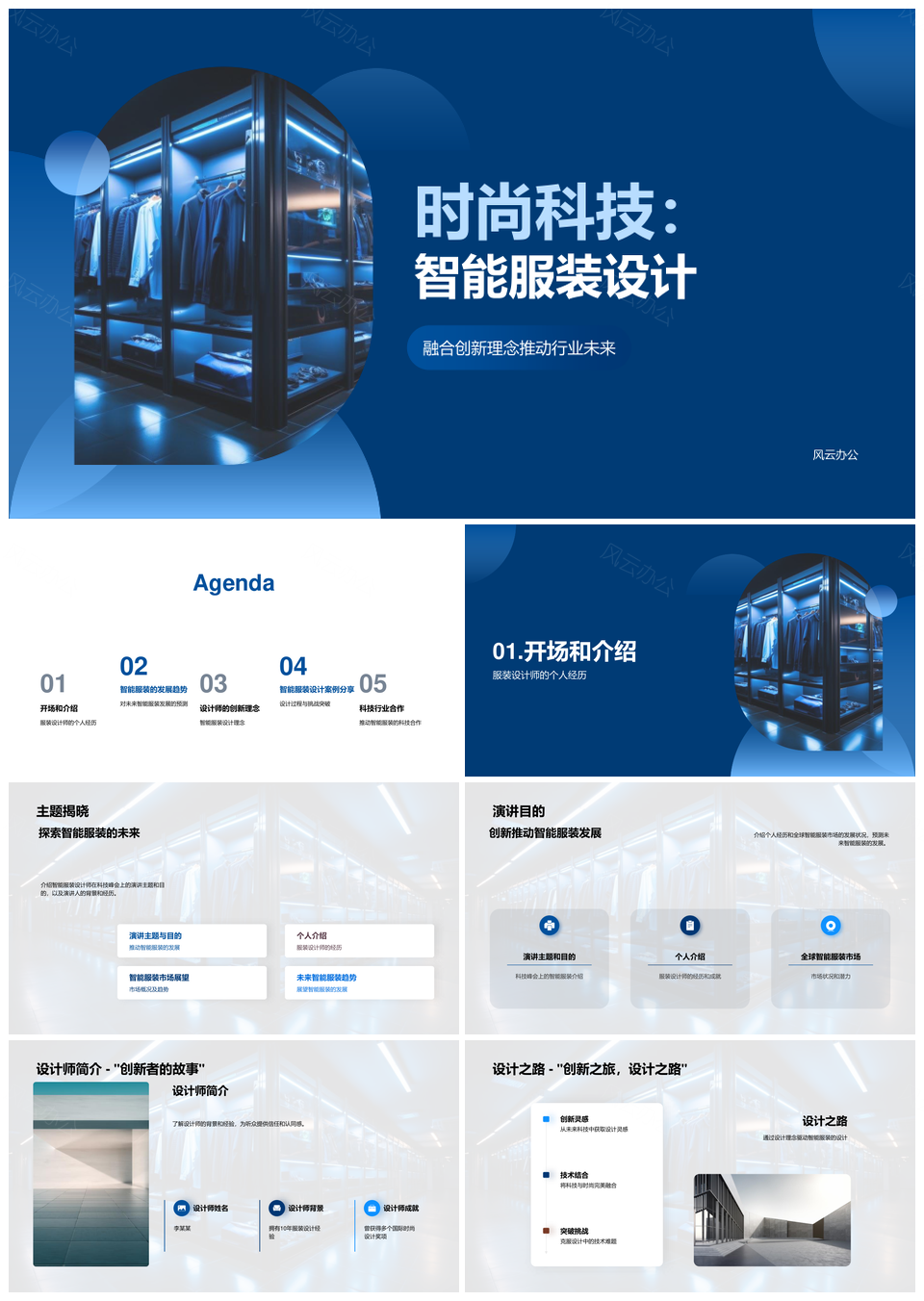 风云办公提供的时尚科技智能服装设计创新挑战PPT模板,下载格式为pptx,一共33页,作品中文字及图均可以修改和编辑,图片更改请在作品中右键图片并更换,文字修改请直接点击文字进行修改。