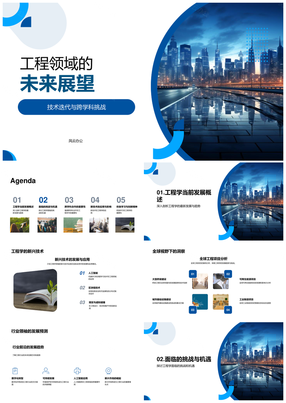 工程未来跨学科技术迭代与可持续城市景观PPT模板推荐