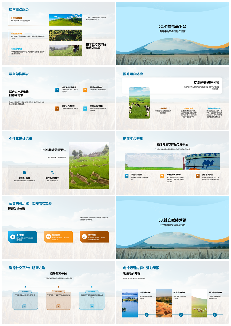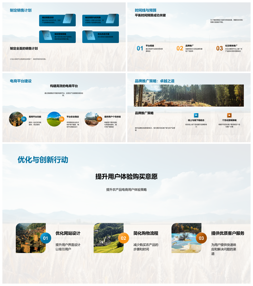 这是一张农业电商互联网营销策略与平台架构突破PPT模板,包含农业、电商、互联网、营销、策略、平台、架构、突破等主题内容,也可用作农业电商互联网营销策略、农业电商互联网营销、农业电商营销策略平台、电商互联网营销策略平台、互联网营销策略平台架构、营销策略平台架构突破、农业电商平台架构突破、电商互联网平台架构突破、互联网营销策略平台、营销策略平台架构、策略平台架构突破、农业电商互联网、电商互联网营销、互联网营销策略、营销策略平台等PPT场景使用。 风云办公提供的农业电商互联网营销策略与平台架构突破PPT模板,下载格式为pptx,一共33页,作品中文字及图均可以修改和编辑,图片更改请在作品中右键图片并更换,文字修改请直接点击文字进行修改。