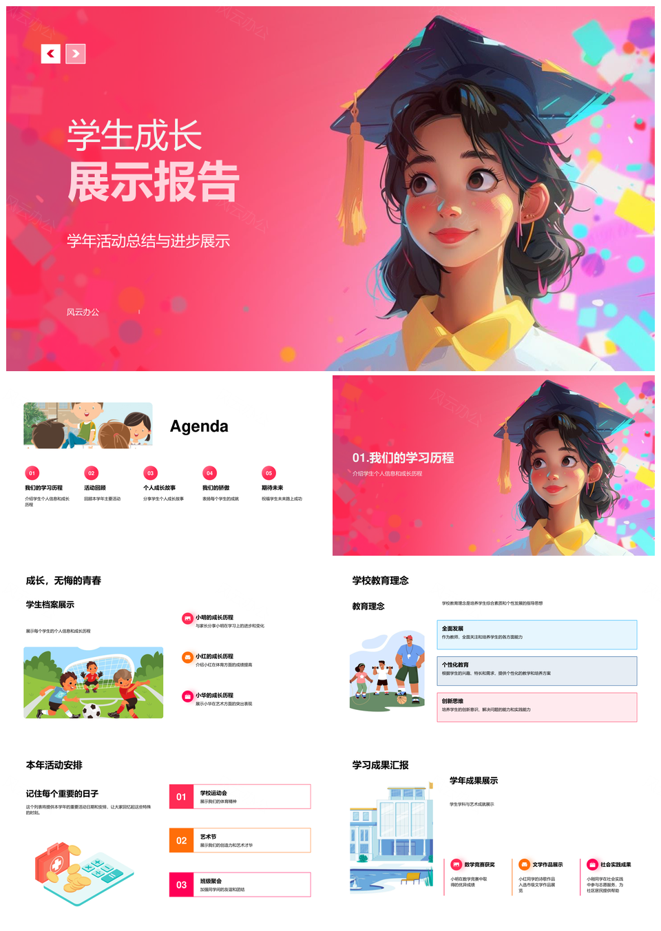 这是一张学生成长故事教育理念学霸艺体社团成果展PPT模板,包含学生、成长故事、教育理念、学霸、艺体社团、成果展等主题内容,也可用作学生成长故事教育理念、教育理念学霸艺体社团、学霸艺体社团成果展、成长故事教育理念学霸、教育理念学霸艺体、艺体社团成果展、学生成长故事教育、成长故事教育理念、教育理念学霸、学生成长故事、学霸艺体社团、社团成果展、成长故事学霸、教育艺体社团、艺体成果展等PPT场景使用。 风云办公提供的学生成长故事教育理念学霸艺体社团成果展PPT模板,下载格式为pptx,一共33页,作品中文字及图均可以修改和编辑,图片更改请在作品中右键图片并更换,文字修改请直接点击文字进行修改。