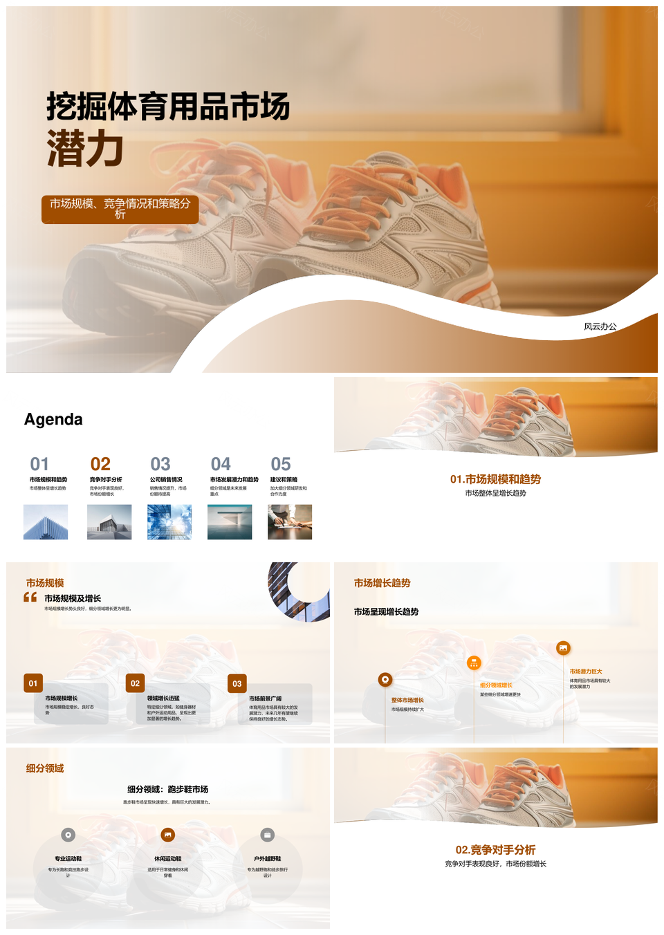 体育用品市场年中总结规模增长细分竞争策略PPT模板推荐