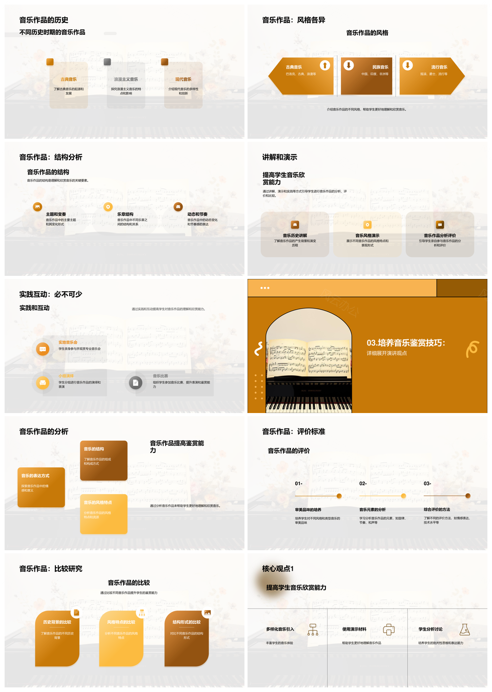 这是一张中学生音乐鉴赏课程设计目标作品历史乐谱PPT模板,包含中学生、音乐鉴赏、课程设计、目标、作品、历史、乐谱等主题内容,也可用作中学生音乐鉴赏课程设计目标、音乐鉴赏课程设计目标作品、课程设计目标作品历史乐谱、中学生音乐鉴赏课程、音乐鉴赏课程设计、课程设计目标作品、设计目标作品历史、目标作品历史乐谱、中学生课程设计目标、音乐鉴赏目标作品、课程设计历史乐谱、中学生目标作品、音乐鉴赏历史乐谱、课程设计作品、目标历史乐谱等PPT场景使用。 风云办公提供的中学生音乐鉴赏课程设计目标作品历史乐谱PPT模板,下载格式为pptx,一共27页,作品中文字及图均可以修改和编辑,图片更改请在作品中右键图片并更换,文字修改请直接点击文字进行修改。