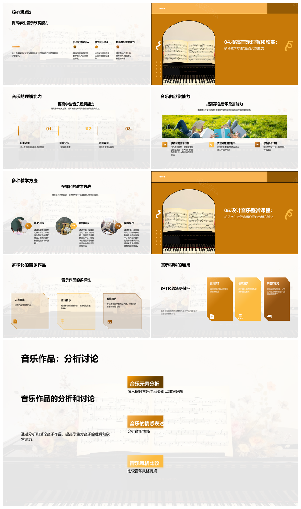 中学生音乐鉴赏课程设计目标作品历史乐谱PPT模板推荐