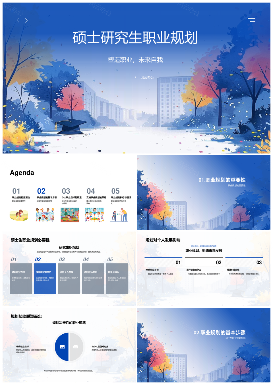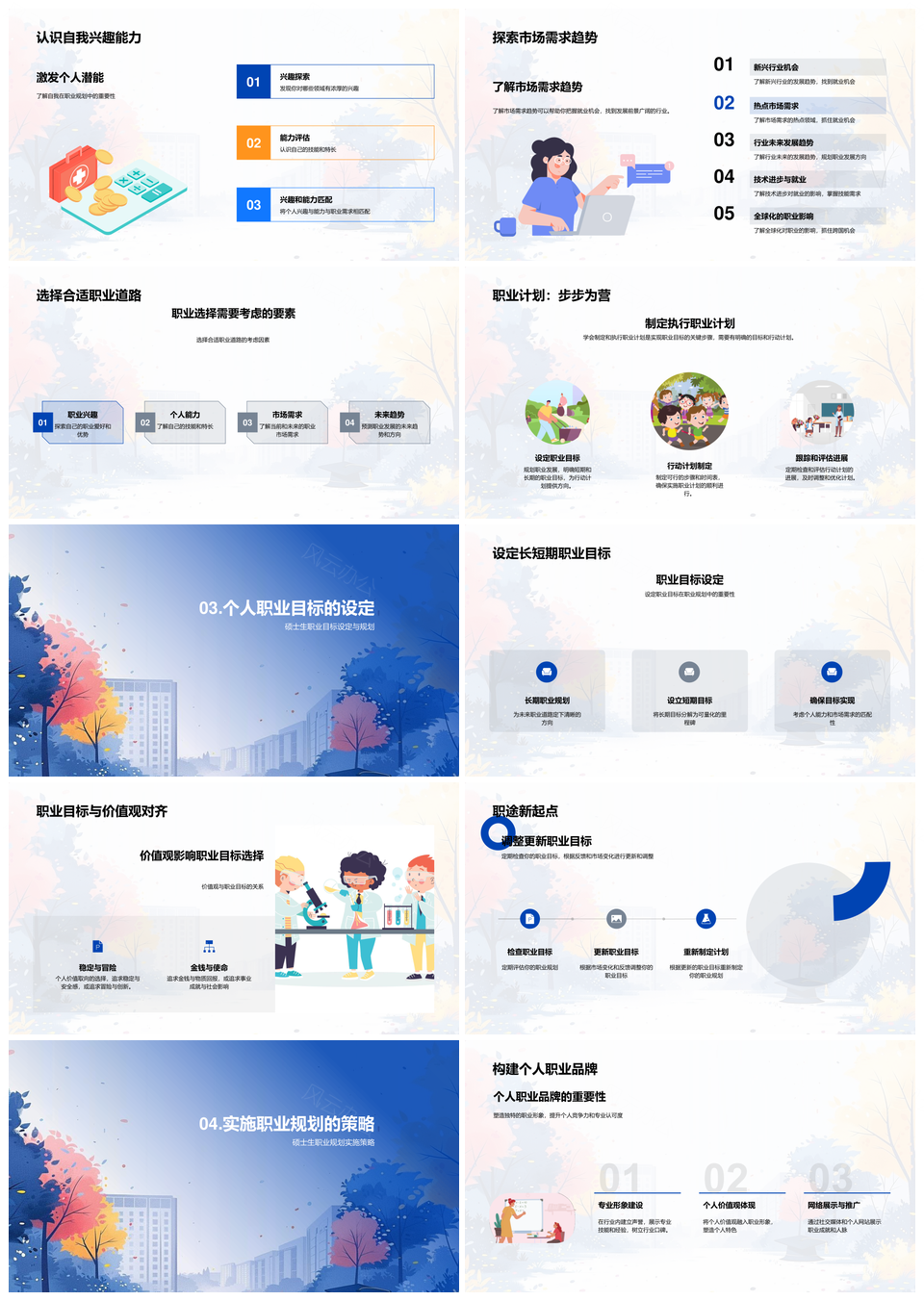 硕士研究生职业发展规划策略目标人脉挑战市场趋势品牌PPT模板推荐
