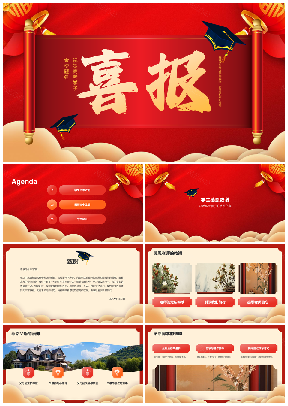 这是一张高考学子感恩师亲学校培养喜报教育成就PPT模板,包含高考学子、感恩、师亲、学校、培养、喜报、教育、成就等主题内容,也可用作高考学子感恩师亲学校培养、感恩师亲学校培养喜报、师亲学校培养喜报教育成就、高考学子培养喜报教育成就、感恩学校培养喜报教育成就、高考学子感恩师亲学校、师亲学校培养教育成就、感恩师亲培养教育成就、学校培养喜报教育成就、高考学子感恩师亲、高考学子感恩学校培养、感恩学校培养喜报、师亲培养喜报教育成就、高考学子培养教育成就、培养喜报教育成就等PPT场景使用。 风云办公提供的高考学子感恩师亲学校培养喜报教育成就PPT模板,下载格式为pptx,一共17页,作品中文字及图均可以修改和编辑,图片更改请在作品中右键图片并更换,文字修改请直接点击文字进行修改。