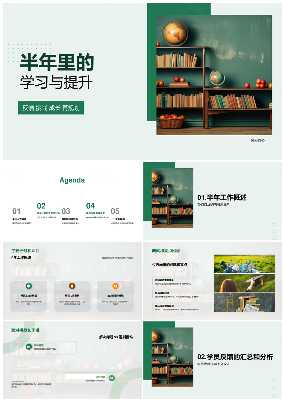 这是一张半年学习成长挑战反馈再规划学员满意服务建议优秀培训师PPT模板,包含半年、学习、成长、挑战、反馈、再规划、学员、满意、服务、建议、优秀、培训师等主题内容,也可用作半年学习成长挑战、学习成长挑战反馈、挑战反馈再规划学员、学员满意服务建议、服务建议优秀培训师、成长挑战反馈再规划、反馈再规划学员满意、再规划学员满意服务、满意服务建议优秀、半年学习成长、学习成长挑战、挑战反馈再规划、学员满意服务、满意服务建议、优秀培训师等PPT场景使用。 风云办公提供的半年学习成长挑战反馈再规划学员满意服务建议优秀培训师PPT模板,下载格式为pptx,一共23页,作品中文字及图均可以修改和编辑,图片更改请在作品中右键图片并更换,文字修改请直接点击文字进行修改。