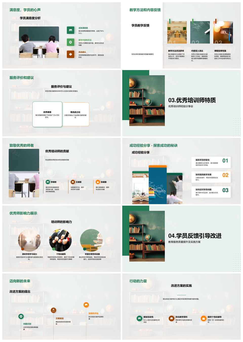 半年学习成长挑战反馈再规划学员满意服务建议优秀培训师PPT模板推荐