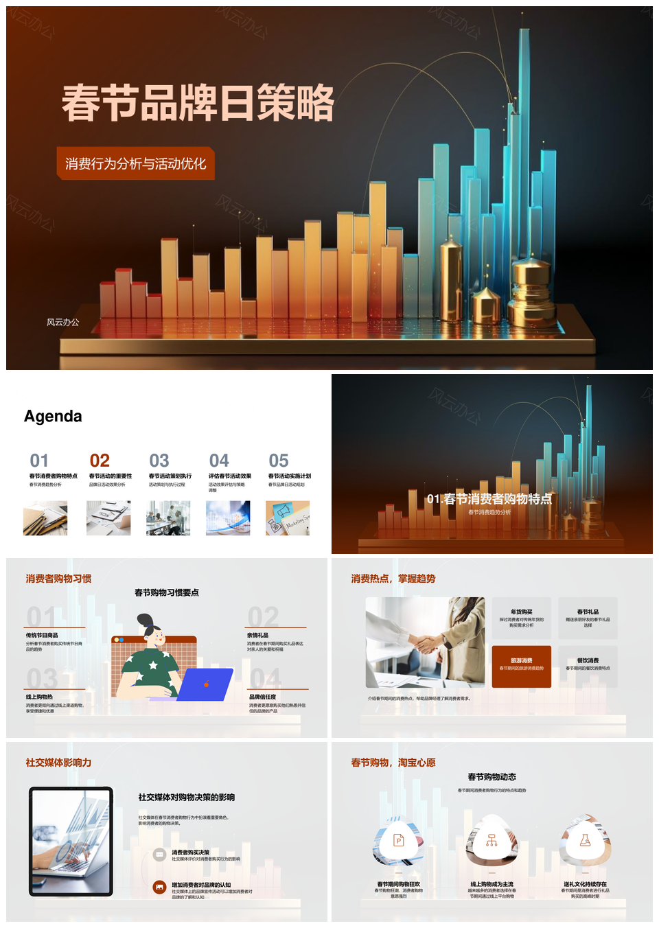 这是一张春节品牌日消费分析活动优化提升知名度PPT模板,包含春节、品牌日、消费分析、活动、优化、提升、知名度等主题内容,也可用作春节品牌日消费分析、春节品牌日活动优化提升、品牌日消费分析活动优化、消费分析活动优化提升、活动优化提升知名度、春节品牌日消费分析活动、品牌日消费分析活动、消费分析活动优化、分析活动优化提升、优化提升知名度、春节品牌日消费活动、品牌日活动优化、春节提升知名度、活动优化提升、提升知名度等PPT场景使用。 风云办公提供的春节品牌日消费分析活动优化提升知名度PPT模板,下载格式为pptx,一共28页,作品中文字及图均可以修改和编辑,图片更改请在作品中右键图片并更换,文字修改请直接点击文字进行修改。