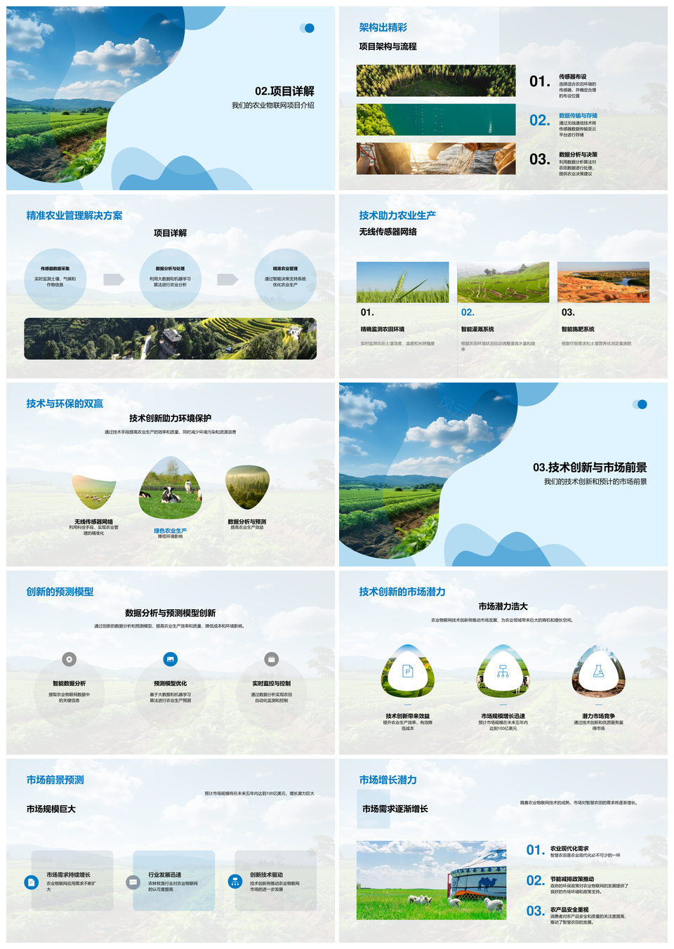 这是一张农业物联网传感网驱动精准农业技术创新PPT模板,包含农业、物联网、传感网、驱动、精准农业、技术创新等主题内容,也可用作农业物联网传感网驱动精准、物联网传感网驱动精准农业技术、传感网驱动精准农业技术创新、农业物联网传感网驱动、物联网传感网驱动精准农业、农业物联网驱动精准农业技术、传感网驱动精准农业技术、物联网驱动精准农业技术创新、农业物联网传感网、传感网驱动精准农业、驱动精准农业技术创新、农业物联网驱动精准、物联网驱动精准农业技术、精准农业技术创新、农业技术创新等PPT场景使用。 风云办公提供的农业物联网传感网驱动精准农业技术创新PPT模板,下载格式为pptx,一共26页,作品中文字及图均可以修改和编辑,图片更改请在作品中右键图片并更换,文字修改请直接点击文字进行修改。