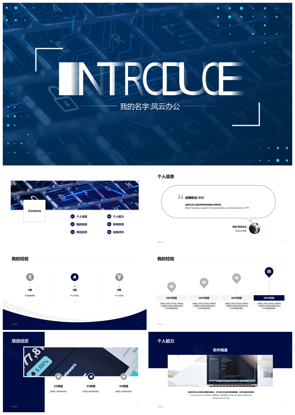 这是一张蓝色科技竞聘述职报告PPT模板入职自我介绍经验能力作品荣耀,包含蓝色科技、竞聘、述职报告、入职、自我介绍、经验、能力、作品、荣耀等主题内容,也可用作蓝色科技竞聘述职报告、科技竞聘述职报告入职、竞聘述职报告入职自我、述职报告入职自我介绍、入职自我介绍经验能力、自我介绍经验能力作品、经验能力作品荣耀、蓝色科技竞聘述职、科技竞聘述职入职、竞聘述职入职自我、述职入职自我介绍经验、入职自我介绍经验作品、自我介绍经验能力荣耀、竞聘入职能力作品、科技述职报告经验等PPT场景使用。 风云办公提供的蓝色科技竞聘述职报告PPT模板入职自我介绍经验能力作品荣耀,下载格式为pptx,一共10页,作品中文字及图均可以修改和编辑,图片更改请在作品中右键图片并更换,文字修改请直接点击文字进行修改。