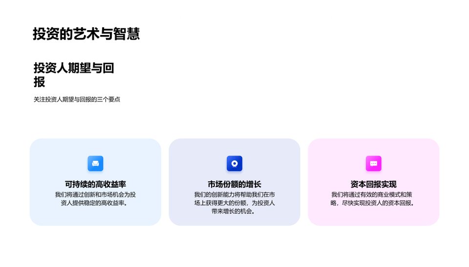 这是一张互联网创新实战策略市场前景投资回报PPT模板,包含互联网、创新、实战策略、市场前景、投资回报等主题内容,也可用作互联网创新实战策略、创新实战策略市场前景、实战策略市场前景投资回报、互联网创新实战、创新实战策略、实战策略市场前景、策略市场前景投资回报、互联网创新、创新实战、实战策略、策略市场前景、市场前景投资回报、互联网实战策略市场前景、创新策略市场前景、实战市场前景投资回报等PPT场景使用。