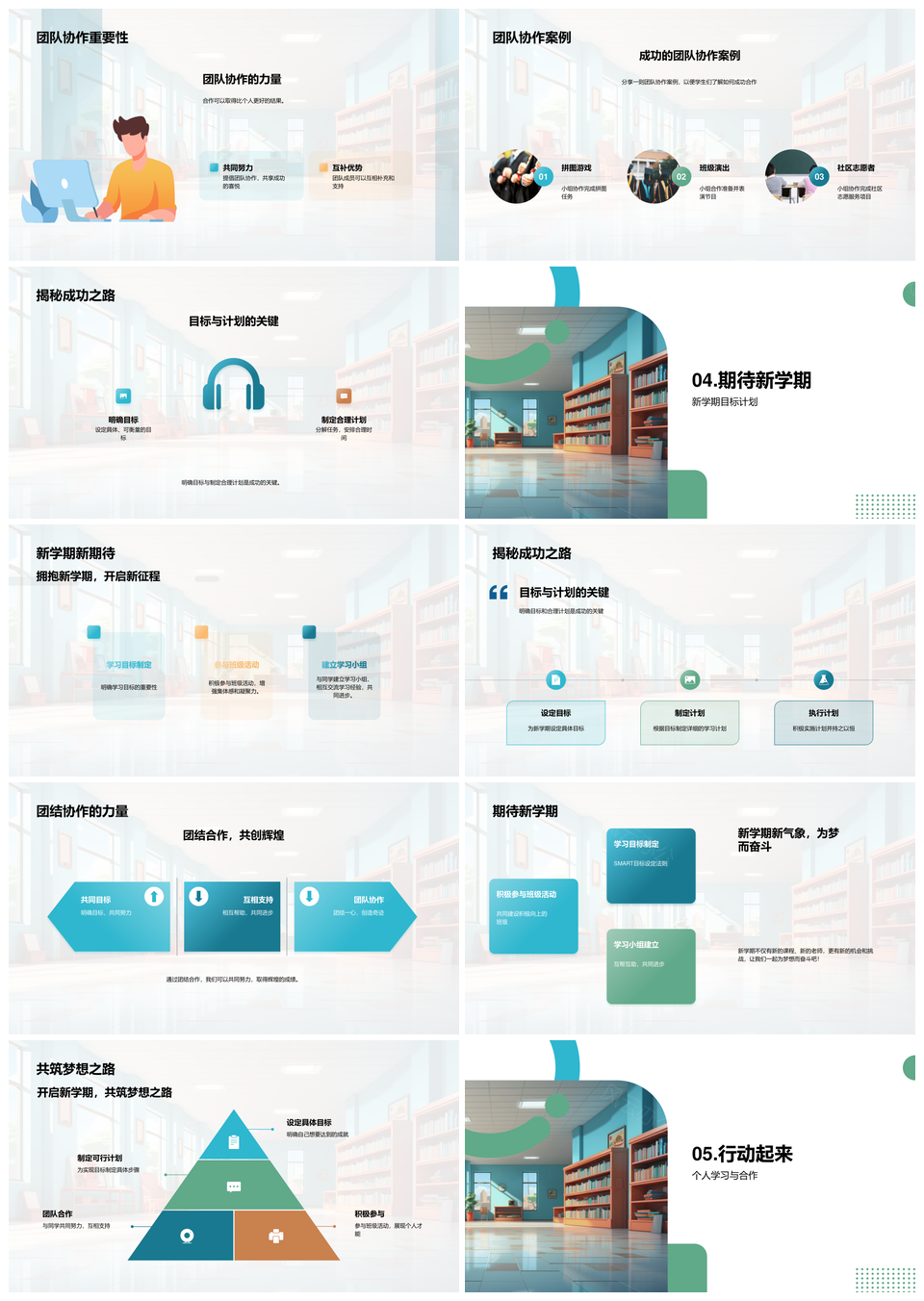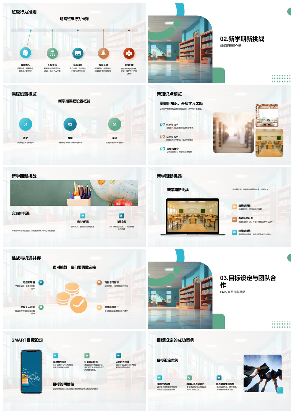风云办公提供的新学期师生共设目标协作回顾假期活动PPT模板,下载格式为pptx,一共33页,作品中文字及图均可以修改和编辑,图片更改请在作品中右键图片并更换,文字修改请直接点击文字进行修改。