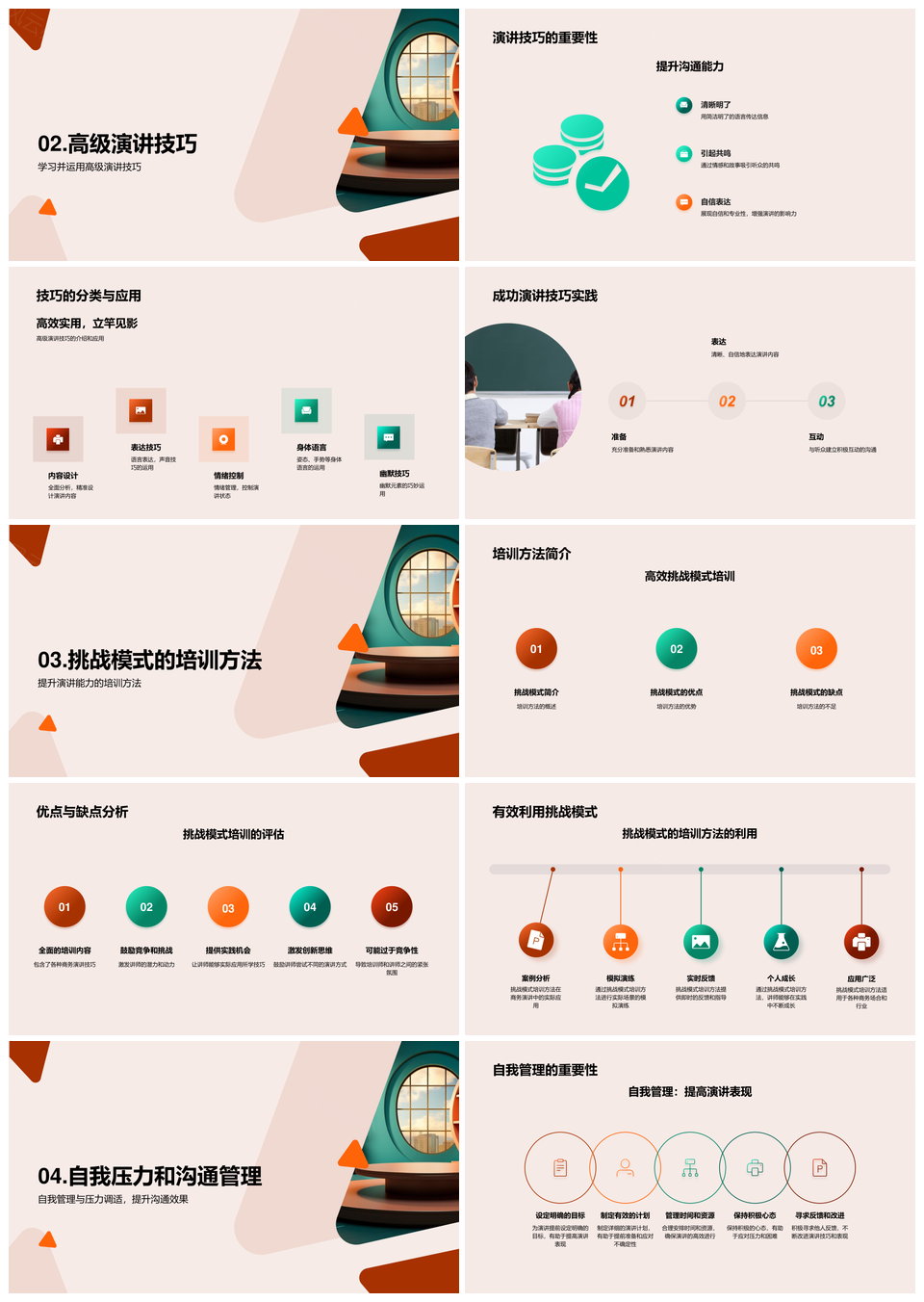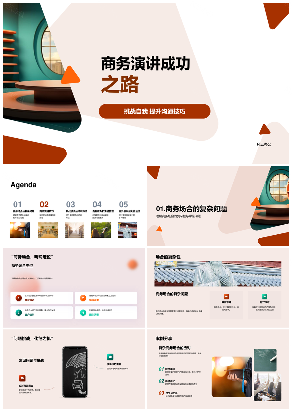 风云办公提供的商务演讲挑战自我精进技巧反思实践PPT模板,下载格式为pptx,一共24页,作品中文字及图均可以修改和编辑,图片更改请在作品中右键图片并更换,文字修改请直接点击文字进行修改。