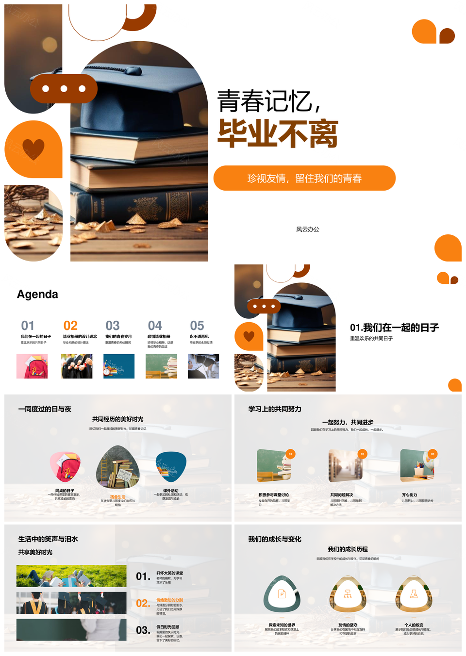 风云办公提供的青春相册毕业不离友情日夜共成长PPT模板,下载格式为pptx,一共28页,作品中文字及图均可以修改和编辑,图片更改请在作品中右键图片并更换,文字修改请直接点击文字进行修改。