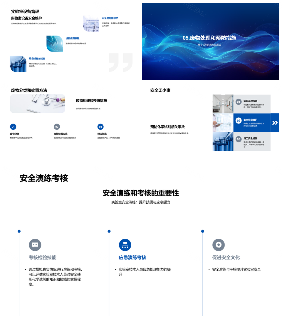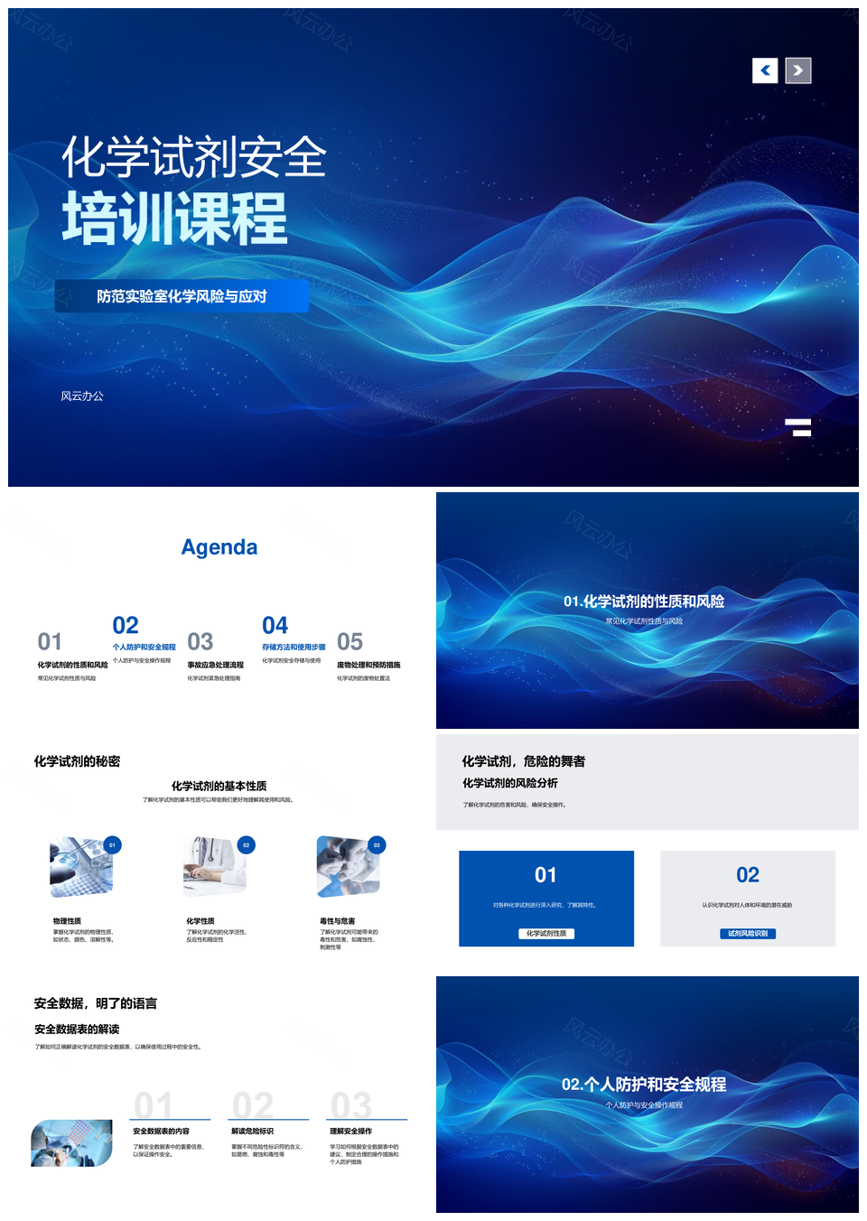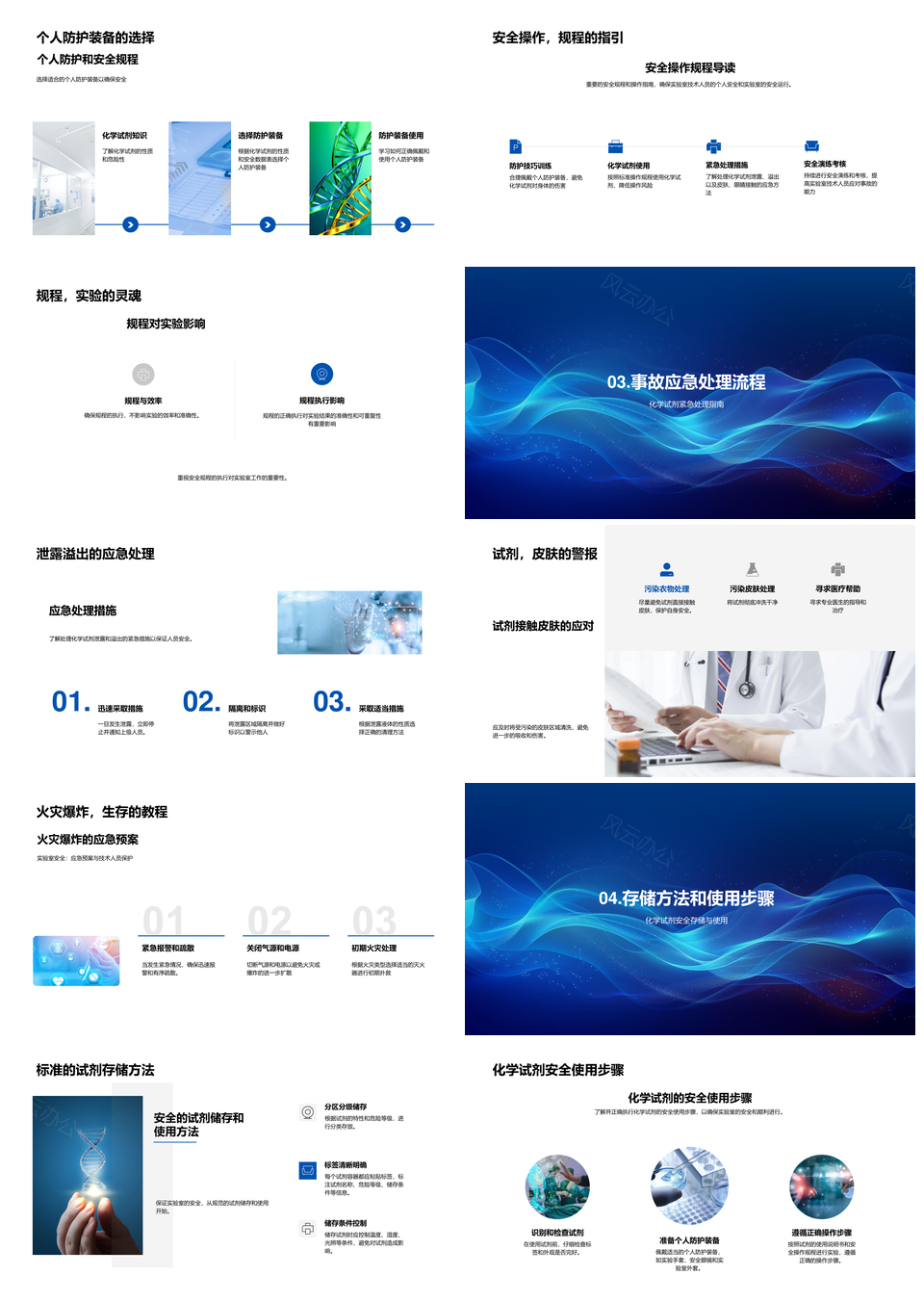 这是一张化学试剂安全培训与防护操作存储应急处理PPT模板,包含化学试剂、安全培训、防护操作、存储、应急处理等主题内容,也可用作化学试剂安全培训防护操作存储、安全培训防护操作存储应急处理、化学试剂安全培训防护操作、安全培训防护操作存储、防护操作存储应急处理、化学试剂安全培训、安全培训防护操作、防护操作存储、存储应急处理、化学试剂防护操作、安全培训存储、防护操作应急处理、化学试剂存储、化学试剂应急处理、安全培训应急处理等PPT场景使用。 风云办公提供的化学试剂安全培训与防护操作存储应急处理PPT模板,下载格式为pptx,一共23页,作品中文字及图均可以修改和编辑,图片更改请在作品中右键图片并更换,文字修改请直接点击文字进行修改。