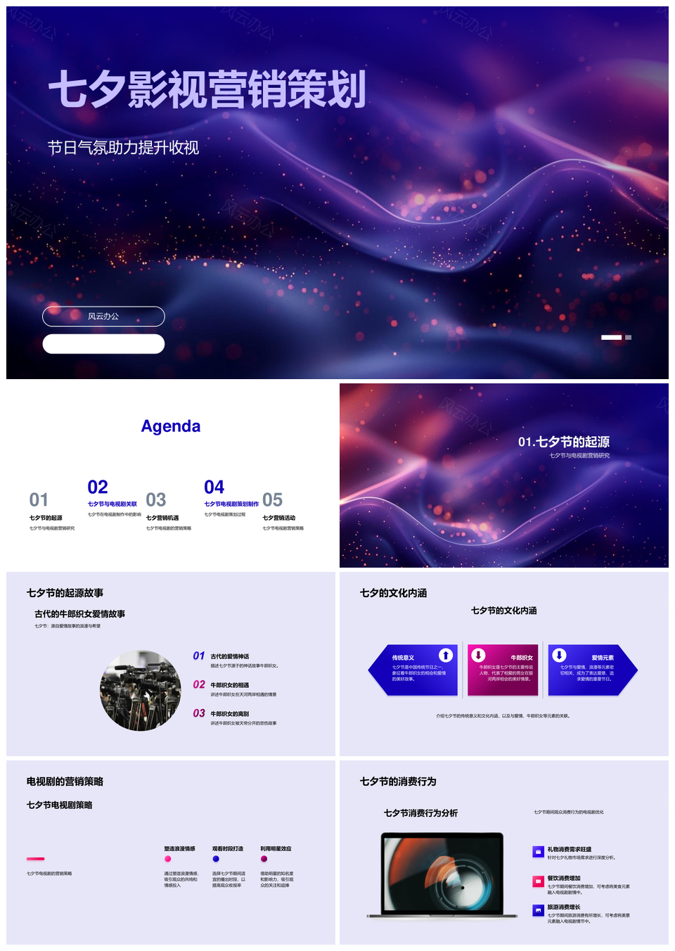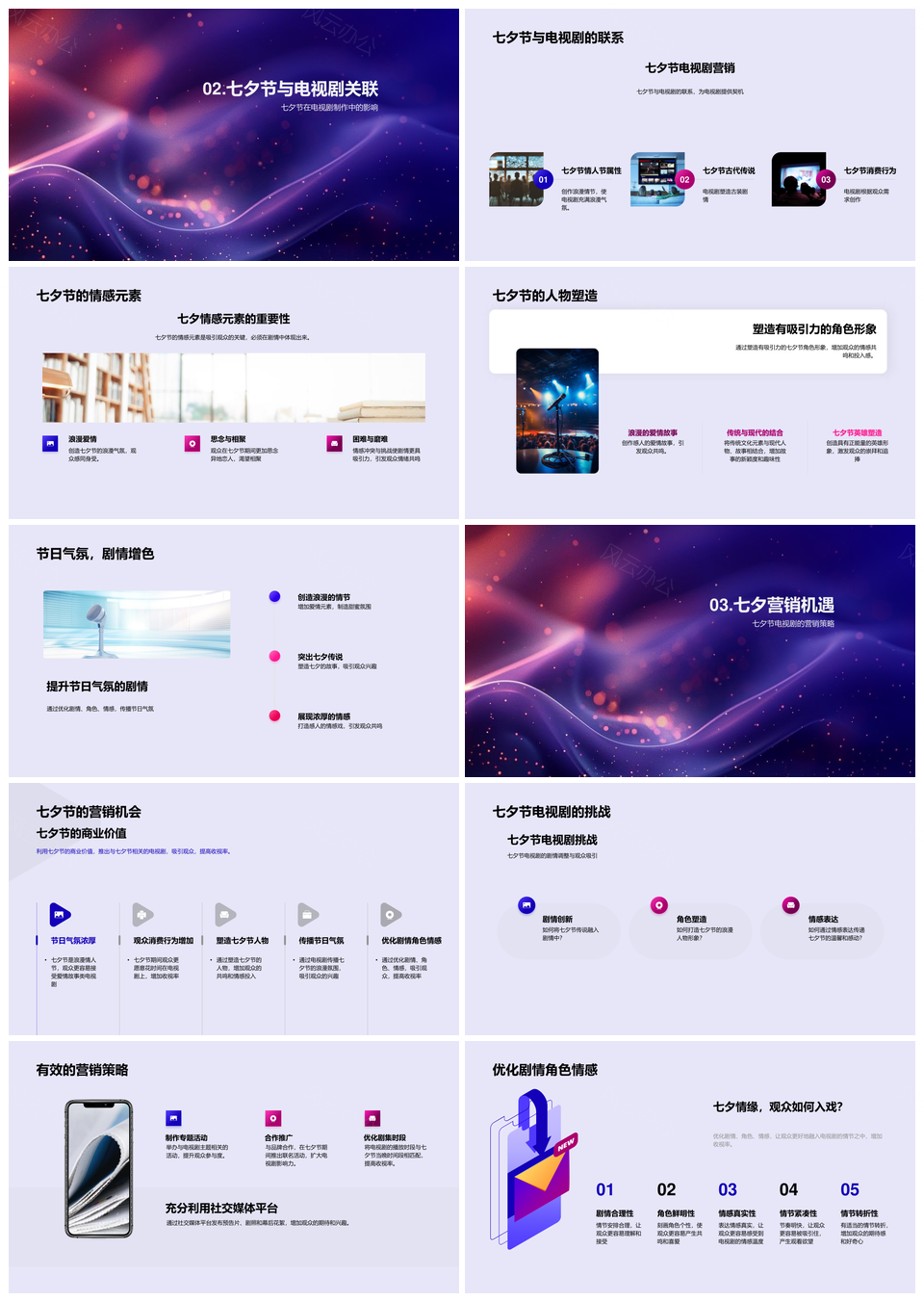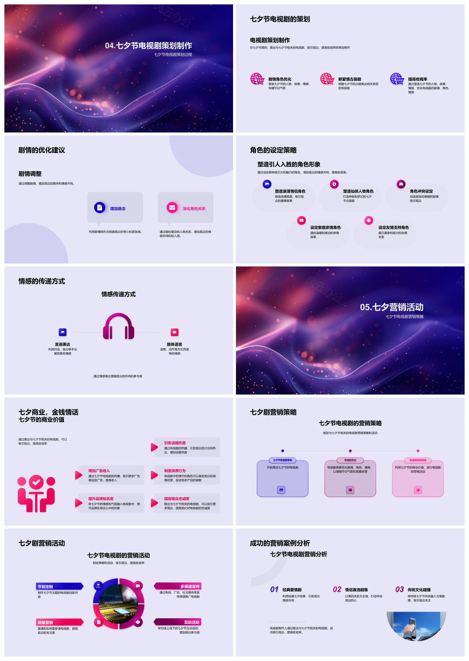 七夕剧集营销策略节日气氛剧情角色情感社交PPT模板推荐
