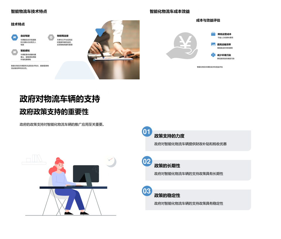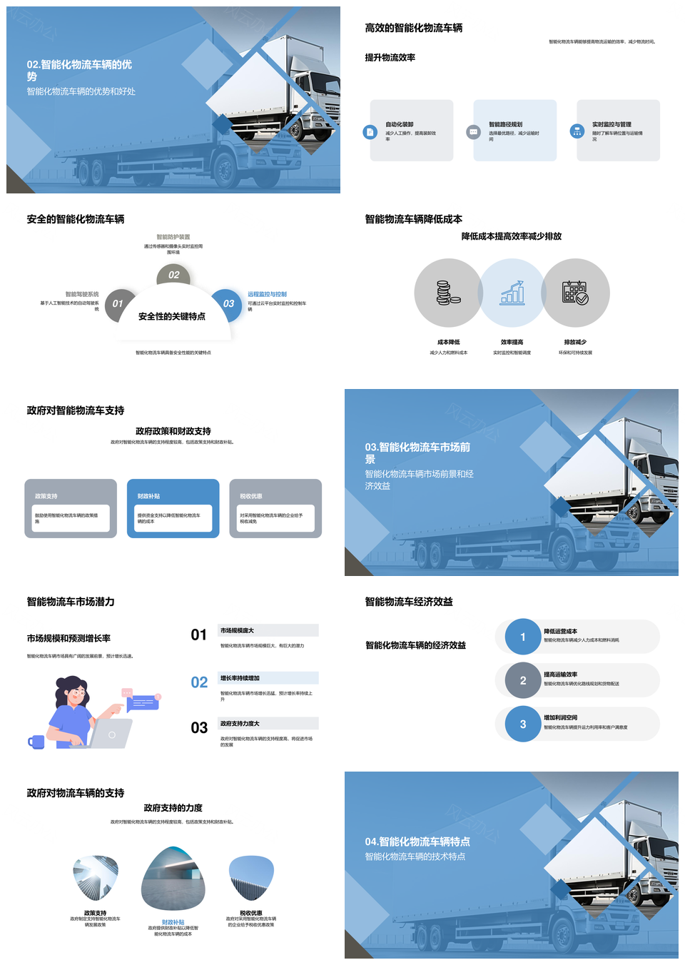 这是一张智能物流车辆机遇挑战创业路演商业计划PPT模板,包含智能、物流、车辆、机遇、挑战、创业、路演、商业、计划等主题内容,也可用作智能物流车辆机遇挑战、智能物流创业路演商业、物流车辆机遇挑战创业、车辆机遇挑战创业路演、机遇挑战创业路演商业、挑战创业路演商业计划、智能物流车辆机遇挑战、智能物流机遇挑战创业、物流车辆挑战创业路演、车辆机遇创业路演商业、智能物流创业路演计划、挑战创业商业计划、智能物流商业计划、物流车辆创业挑战、创业路演商业计划等PPT场景使用。 风云办公提供的智能物流车辆机遇挑战创业路演商业计划PPT模板,下载格式为pptx,一共21页,作品中文字及图均可以修改和编辑,图片更改请在作品中右键图片并更换,文字修改请直接点击文字进行修改。