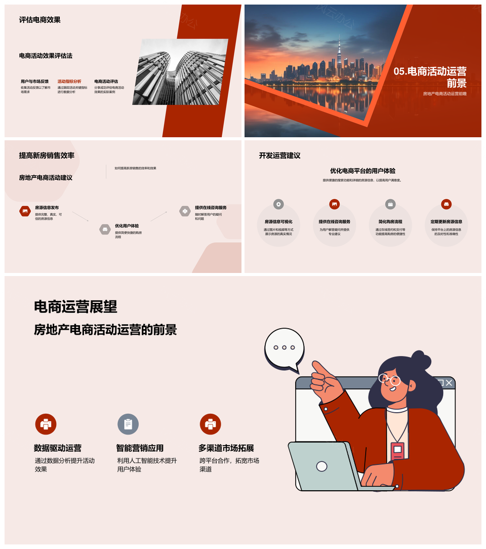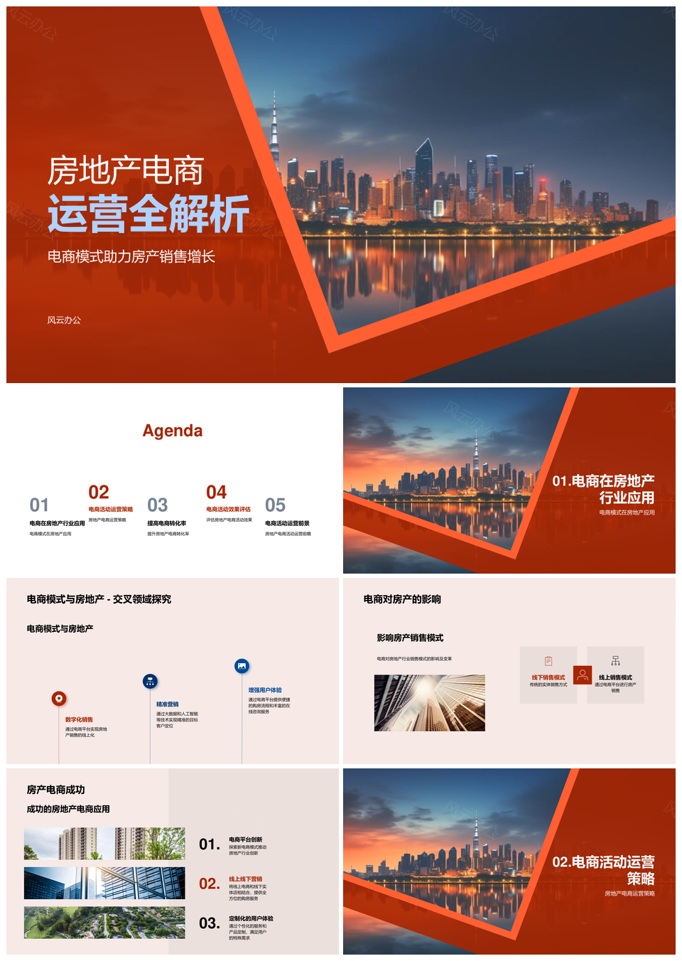 风云办公提供的房地产电商运营模式与销售增长解析PPT模板,下载格式为pptx,一共23页,作品中文字及图均可以修改和编辑,图片更改请在作品中右键图片并更换,文字修改请直接点击文字进行修改。